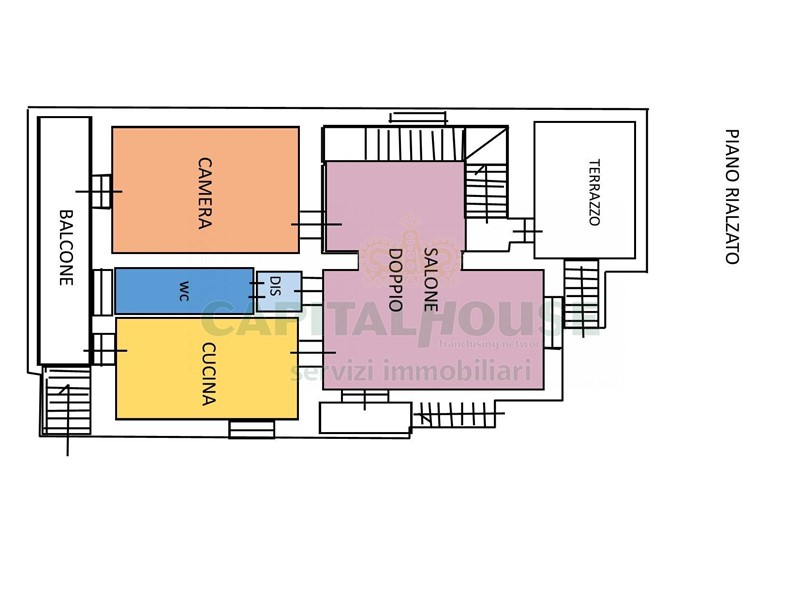 Il piano rialzato è collegato al primo piano tramite una comoda scala interna in muratura.