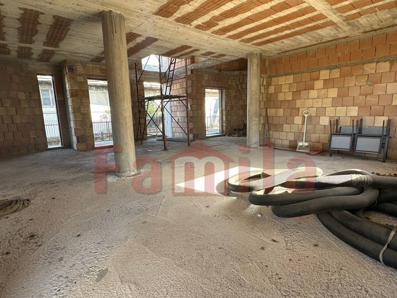 L'immobile si sviluppa su tre livelli ed è così composto: al piano terra troviamo un locale garage/tavernetta di 180 mq, al piano rialzato troviamo la cucina con terrazzo, salone triplo e un bagno.