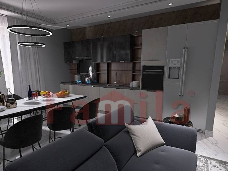 All'ingresso ci accoglie un ampio soggiorno con cucina a vista e balcone. Proseguendo troviamo due camere da letto, di cui una con bagno privato, un altro servizio e un angolo lavanderia.