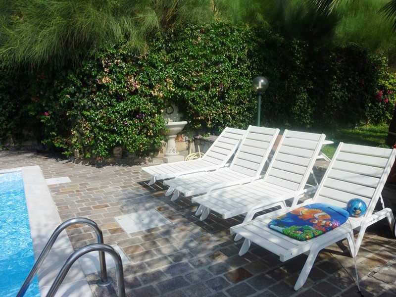 L'immoble è circondato da un rigoglioso e ben curato parco di 4000mq ed è dotato di una grande piscina e dependance di 45mq circa composta da soggiorno con angolo cottura, camera da letto e bagno.