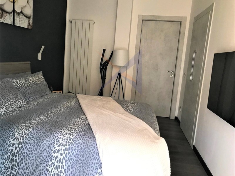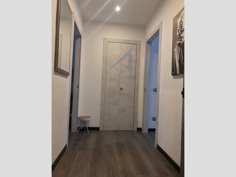 L'alloggio è composto da: ingresso in un ampio soggiorno, cucina abitabile, due camere da letto, bagno, ripostiglio, due balconi, cantina e posto auto condominiale.