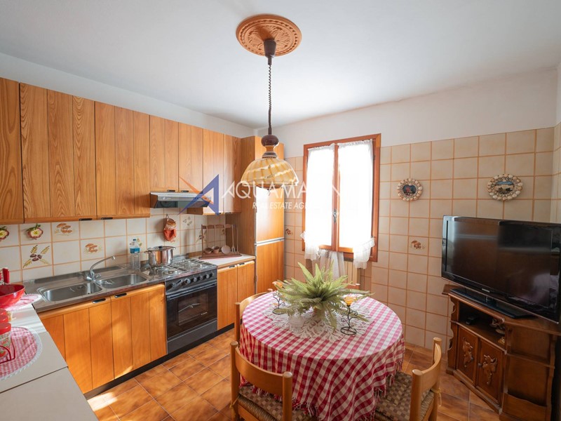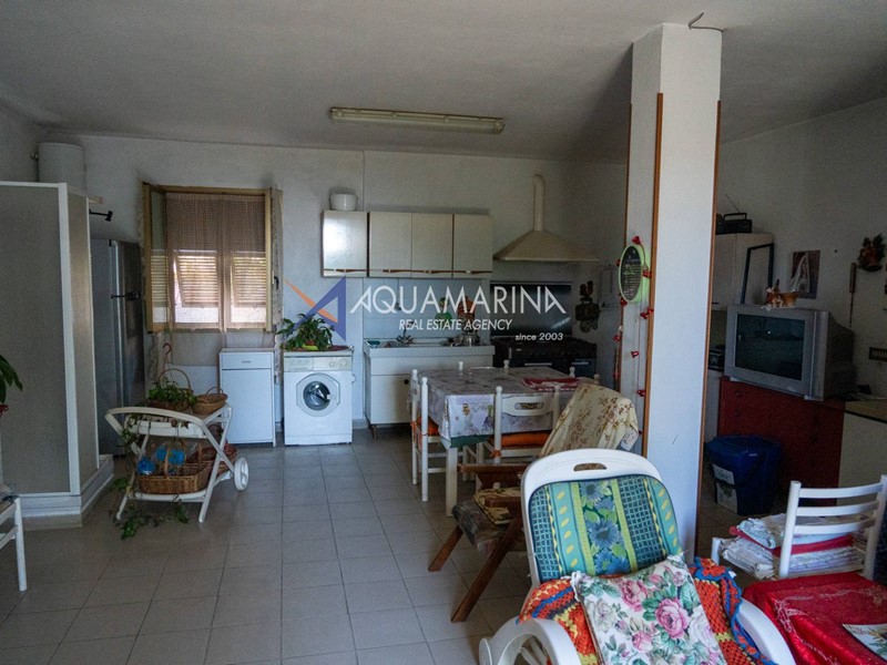 L'immobile, che si propone in stato di origine, è suddiviso al piano terra in ingresso, cucina abitabile, soggiorno, ripostiglio, bagno, 6.000 mq circa di terreno ricco di piante da frutto ed ulivi e un locale di 50 mq circa adibito attualmente a magazzino, ma trasformabile in appartamento grazie alla sua generosa metratura.