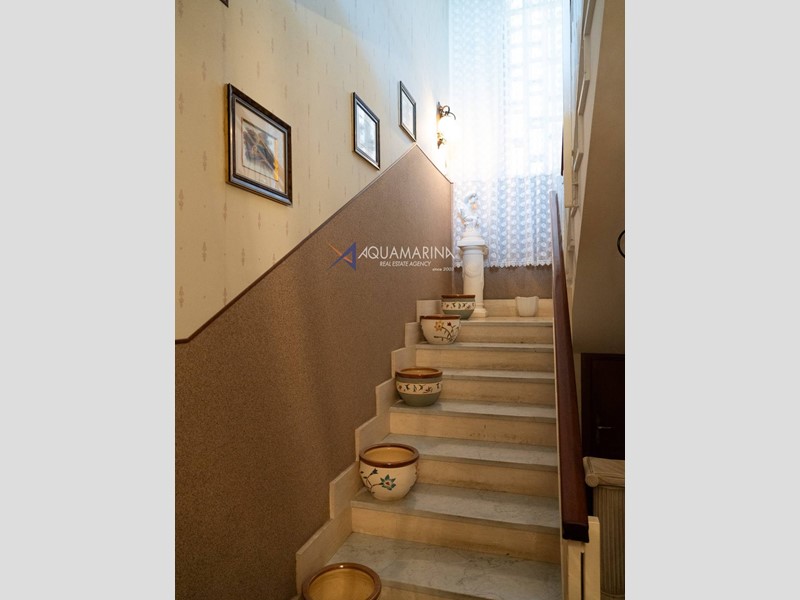Al primo piano troviamo un secondo soggiorno, cucina abitabile, due spaziose camere da letto, bagno e luminosa terrazza con meravigliosa vista mare.