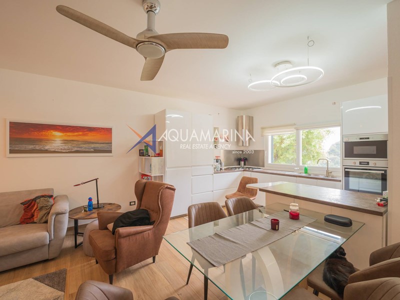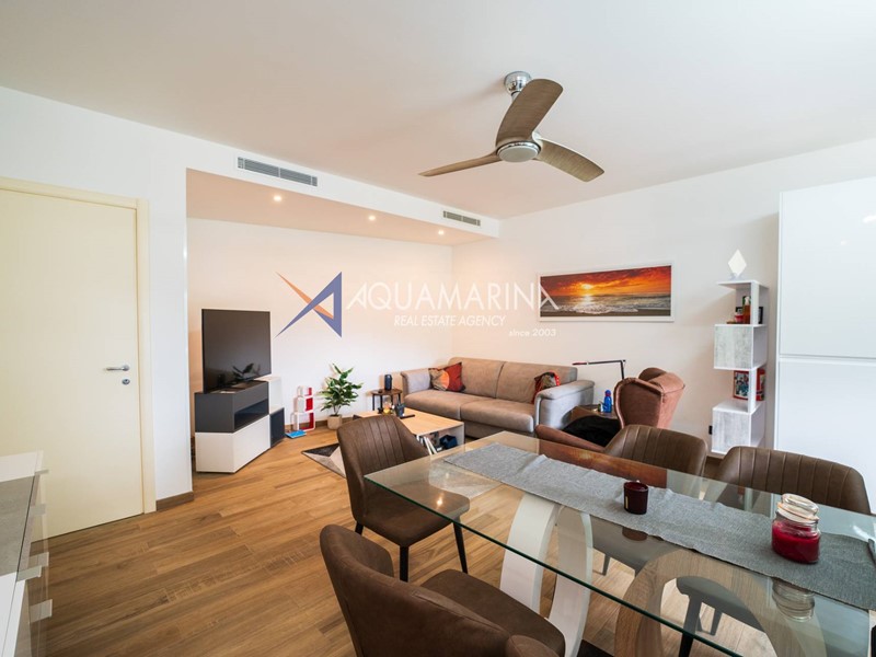 ingresso in ampio soggiorno con zona pranzo e cucina a vista, spaziosa camera da letto e grande bagno con box doccia.