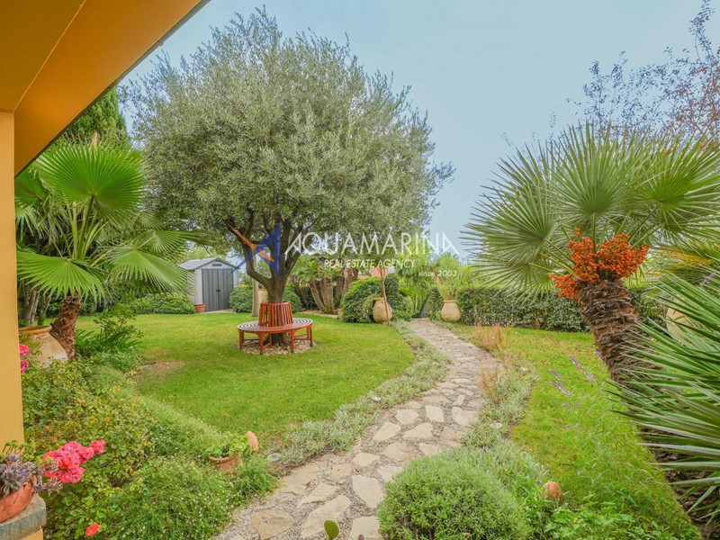 Completa la proprietà spazioso garage per due auto e giardino circostante di circa 500 mq.