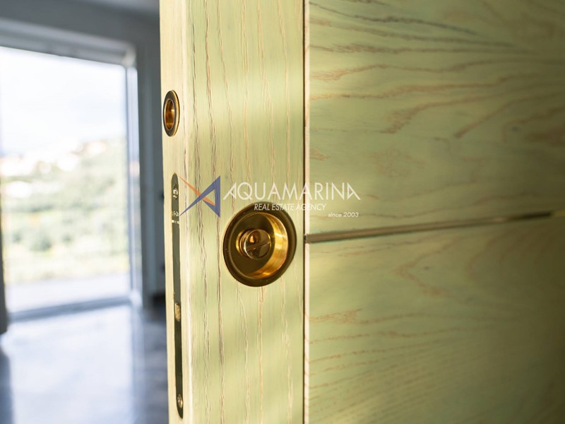 Il piano terra della villa, dotato di riscaldamento a pavimento, è suddiviso in un ampio e luminoso salotto, cucina, tre stanze da letto e due moderni bagni in marmo e stucco veneziano, i serramenti sono di altissima qualità in triplo vetro a doppia camera daria in grado di isolare perfettamente sia dal punto di vista termico che acustico e garantire la sicurezza della proprietà. L'ampia zona giorno è caratterizzata da un'atmosfera raffinata e da un'abbondante presenza di luce naturale grazie alle grandi finestre che si affacciano sul giardino.
