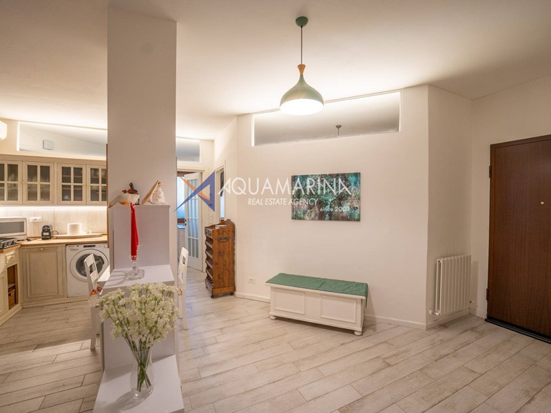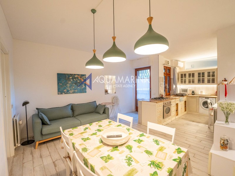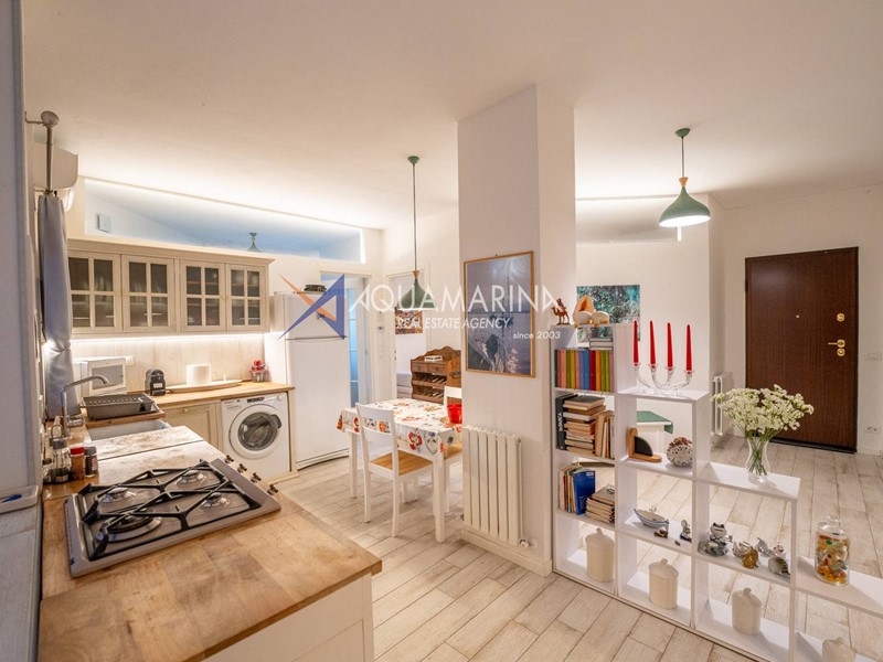 La seconda, un bilocale di 65 mq, offre unampia zona giorno con cucina a vista, una camera matrimoniale, un bagno finestrato e una corte privata riservata.