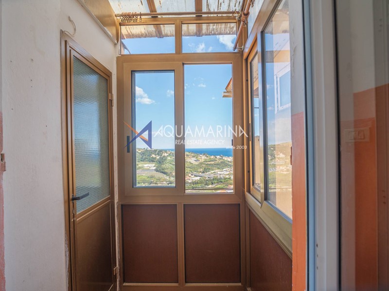 La luminosa sala, con unampia finestra esposta a sud, offre una splendida vista sul mare.