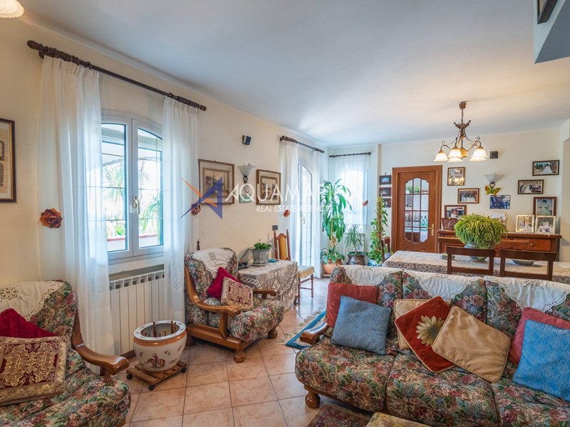 Sanremo, in una zona residenziale immersa nel verde, a pochi minuti dal mare, proponiamo in vendita villa vista mare con magazzino e terreno circostante. La proprietà, costruita nel 1993, si sviluppa su due livelli ed è circondata da un ampio terreno di 1000 mq, che offre una piacevole oasi di tranquillità. Un cancello elettrico conduce a un vialetto che porta all'ingresso principale. Qui, si accede a un ampio atrio, da cui si diramano le varie stanze della casa. La zona living, è composta da un accogliente salotto, arricchito da un camino, completato da un comodo tavolo per pranzare con accesso diretto al giardino. Da qui, è possibile godere di una piacevole vista sul verde circostante. Il cucinotto è accessibile e funzionale, dotato di accesso diretto al giardino. A completare il piano terra, vi è una camera da letto, anch'essa con accesso al giardino e uno spazioso bagno ben fornito e finestrato. Attraverso una scala, si accede al piano superiore, interamente dedicato alla zona notte. Qui, sono presenti due camere da letto matrimoniali con accesso a un balcone privato e alla terrazza, dove troviamo un secondo accesso esterno. Questo piano è completato dal secondo bagno, finestrato e con box doccia. L'immobile è dotato di un sistema di riscaldamento a radiatori e di condizionatori, garantendo comfort termico durante tutto l'anno. La villa è circondata da un ampio terreno di 1000 mq, curato e ben tenuto, che offre diverse possibilità di personalizzazione e di creazione di spazi esterni dedicati al relax e al divertimento, come ad esempio una zona pranzo all'aperto, potendo usufruire del forno e del barbecue già presenti. La proprietà include anche un grande locale adibito a magazzino, attualmente utilizzato come deposito attrezzi, ma con la possibilità di cambio di destinazione d'uso, così da ricavare un secondo appartamento. Gli interni luminosi e ben distribuiti, uniti alla posizione tranquilla e immersa nel verde, rendono questa villa una soluzione abitativa ideale per chi desidera vivere in un ambiente sereno e rilassante, a pochi minuti dal mare. La villa si trova in Strada San Giovanni a Sanremo, in una zona residenziale tranquilla e circondata dal verde. Il mare è facilmente raggiungibile in pochi minuti di macchina, offrendo la possibilità di godere delle spiagge e del clima mediterraneo.