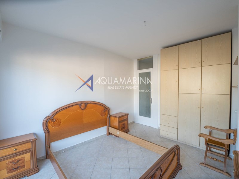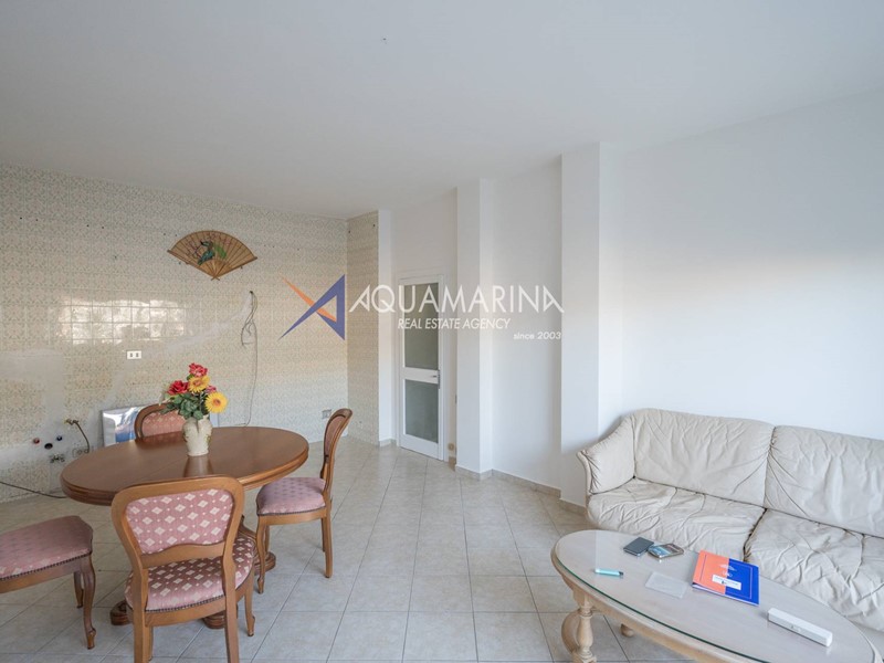Lappartamento si apre su un comodo ingresso che conduce alla zona giorno, dove troviamo un angolo cottura ancora personalizzabile, valorizzato da una grande vetrata a tutta altezza che permette laccesso diretto alla corte privata di proprietà. Da qui si può godere di una piacevole vista mare, che dona ulteriore charme e tranquillità allambiente.
