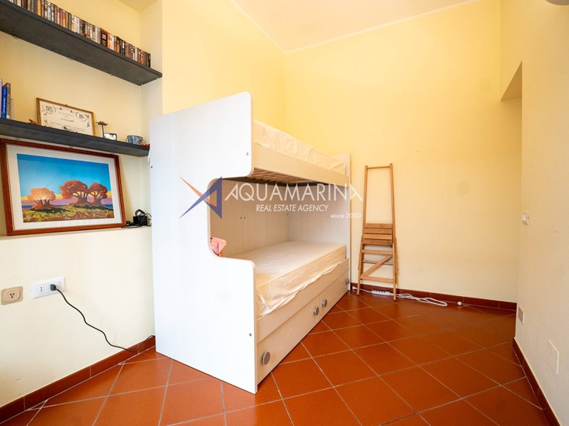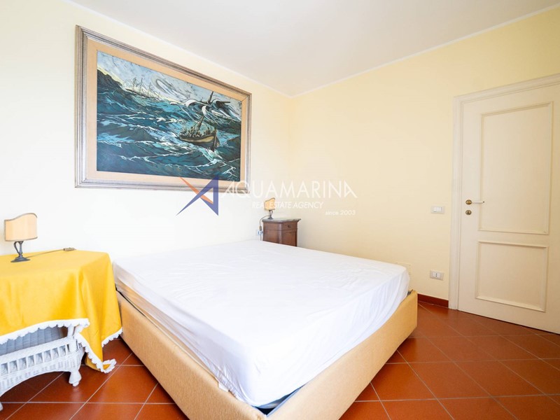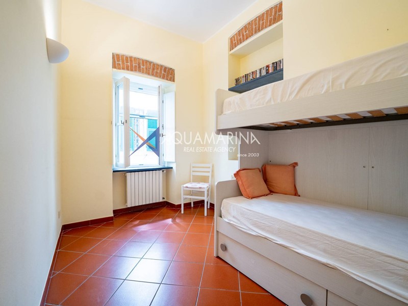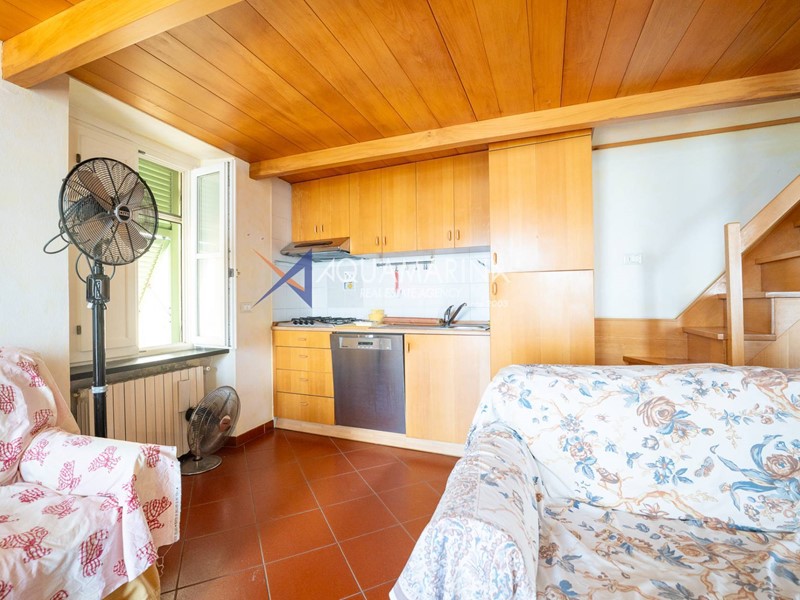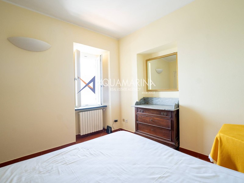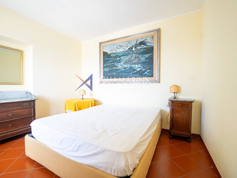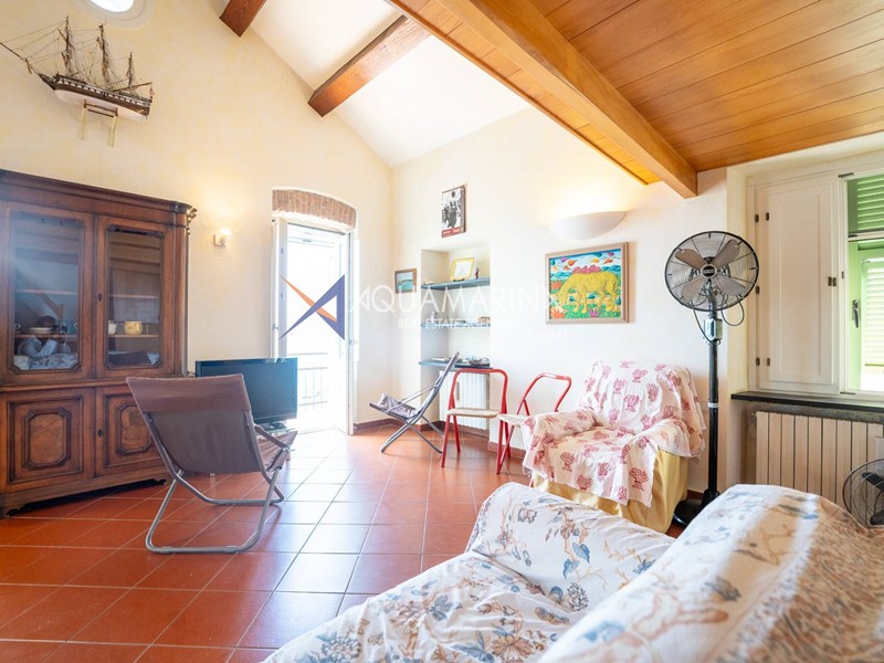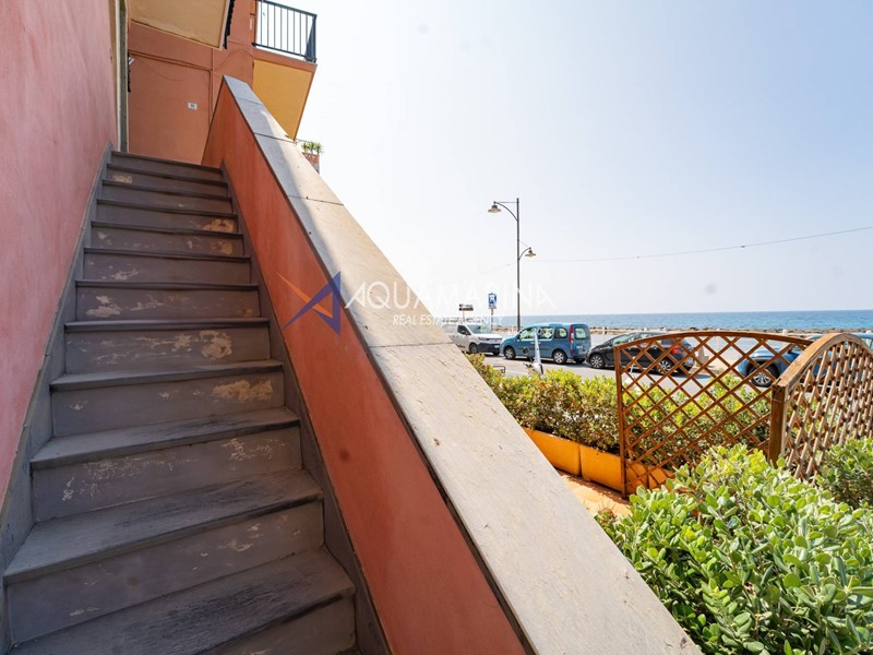 L' accesso alla propietà è costituito da una comoda scalinata esterna in stile ligure davanti al mare, che porta al primo piano composto da ingresso, 3 stanze da letto finemente arredate e il bagno spazioso e dotato di tutti i confort.
