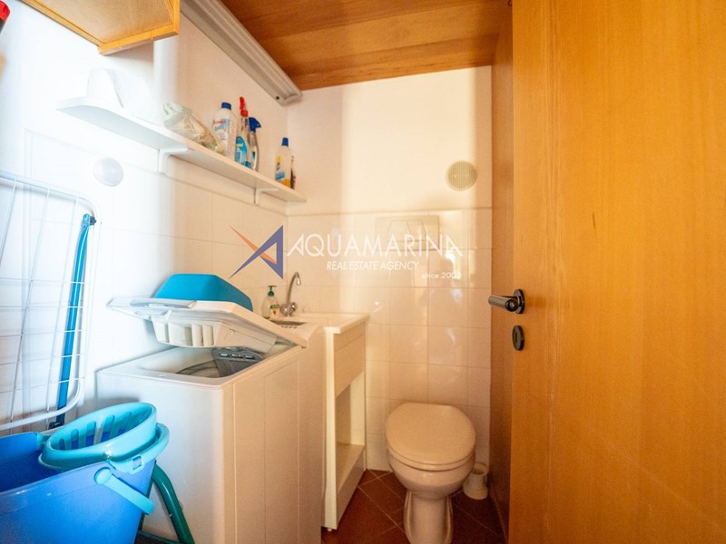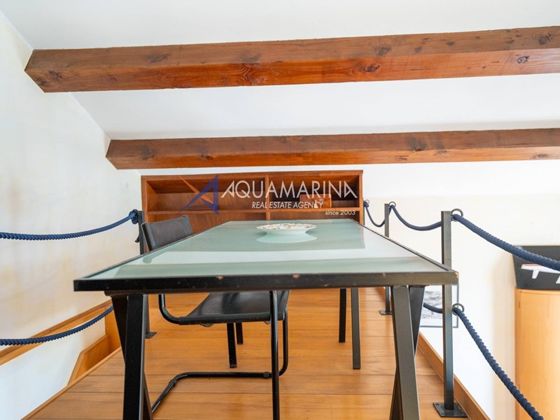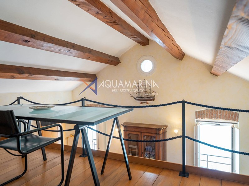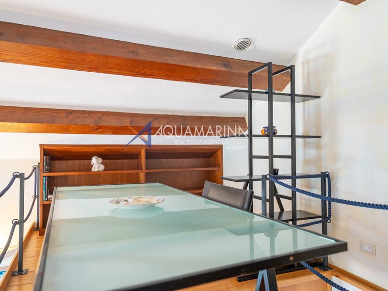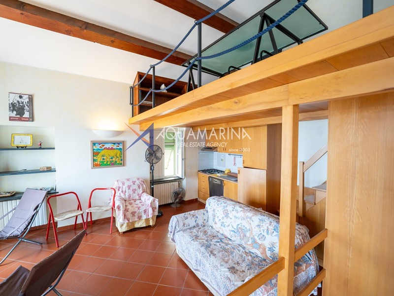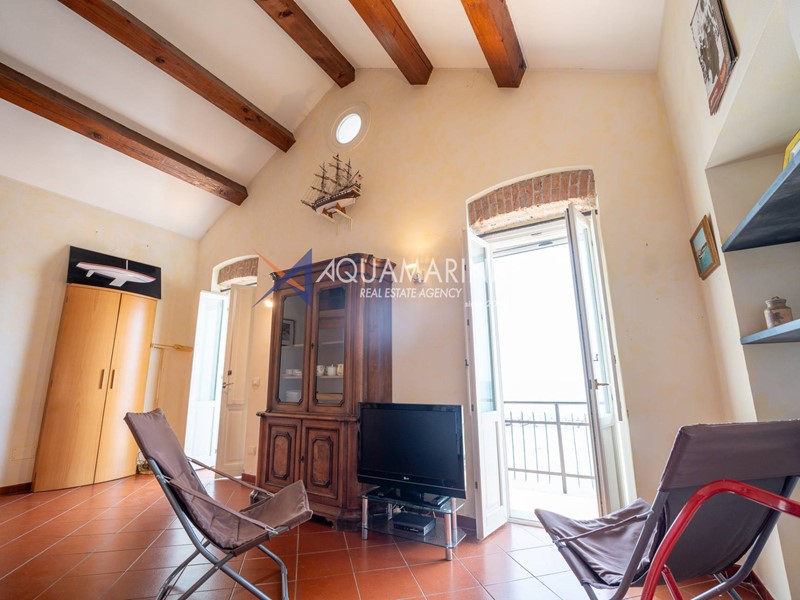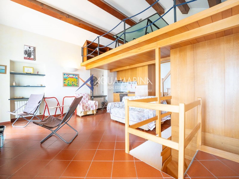 Al secondo piano raggiungibile da una scala interna troviamo la luminosissima zona giorno, con il balcone ideale per cenare davanti al mare, la cucina, completamente attrezzata e funzionale e il soggiorno che gode di una bellissima esposizione a sud, che garantisce una luminosità naturale durante tutto il giorno.