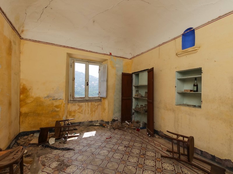 Nella prima collina del Comune di Cogorno in loc. Ruscalla a soli km. 1,5 dal centro di San Salvatore e a soli km. 4 dalle spiagge, vendesi porzione di casa totalmente da ristrutturare con strepitosa vista mare e golfo di Portofino. L' accesso attualmente non è carrabile, dalla strada all' edificio si accede tramite una piccola scala posta sottostrada, esiste comunque la possibilità di rendere carrabile l'accesso . L' immobile inserito in contesto a schiera si sviluppa nella parte centrale come proprietà terra-tetto con giardino/terreno antistante. Attualmente composto da due subalterni distinti come segue. Sub 1 cat. A/4 di mq. 178 totali, escluse aree scoperte mq 169 disposti al piano terra e piano primo per vani 7,5. Sub 2 cat. A/4 posto al piano secondo collegato al sub 1 da scala interna e dotato di secondo accesso privato indipendente per tot. mq. 115 escluse aree esterne mq. 109 , vani 6 più terrazzo belvedere a tetto.