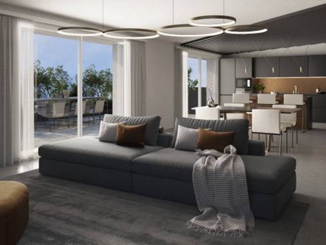 Questa residenza al piano terra di 131 mq vanta di uno scoperto esclusivo di 270 mq. All'ingresso ti accoglie la zona giorno con cucina open-space e una grande vetrata che permette di vivere i due ambienti interno ed esterno in armonia. Punti di forza sono luminosità e privacy.