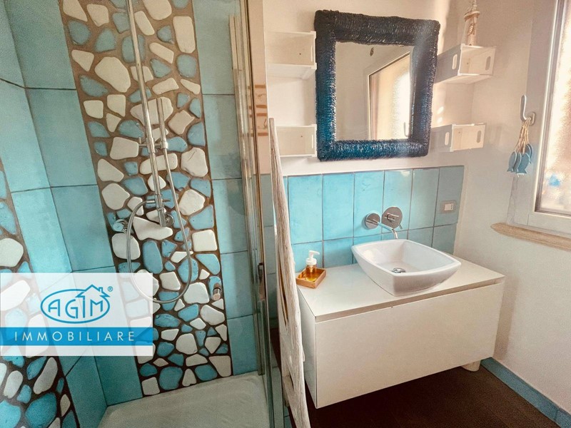 Tutti gli Infissi esterni sono in legno e fibra di vetro a triplo vetro camera mentre gli Infissi interni in legno massello - Pavimentazione, piano primo, in parquet di legno Belga (assi di legno). La Cucina Balistreri. Nel bagno al piano superiore sono presenti delle maioliche artigianali (dentro la doccia) e il mobile è del designer Antonio Lupi. Il bagno situato all piano terra invece presenta un antibagno, separato dalla toilette, oltre doccia con pareti in pietra vera e pavimentazione a sfioro con erogatore a cascata e rubinetteria Zucchetti di grande design.
