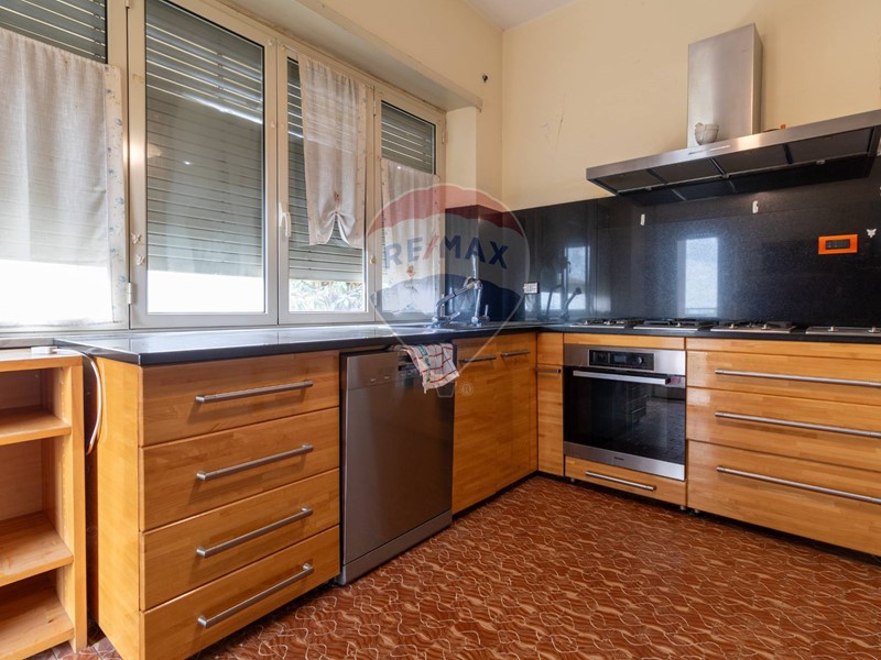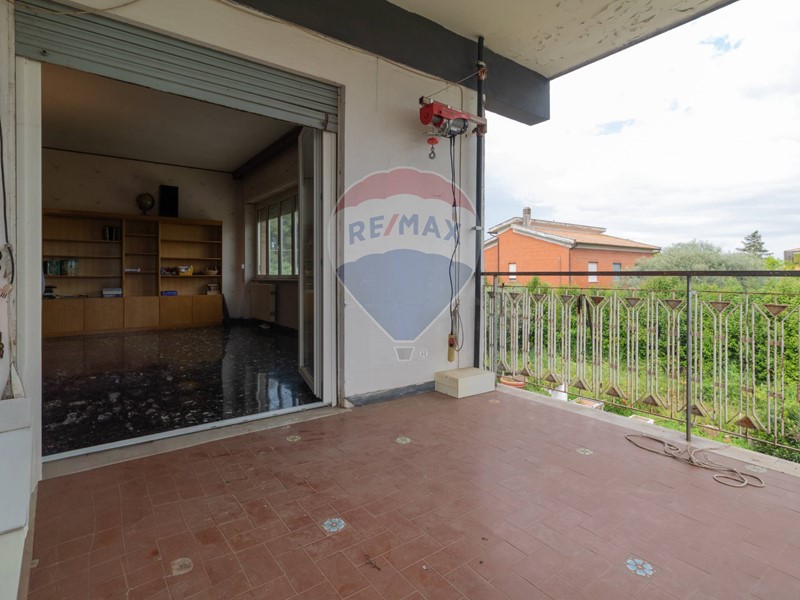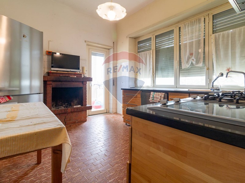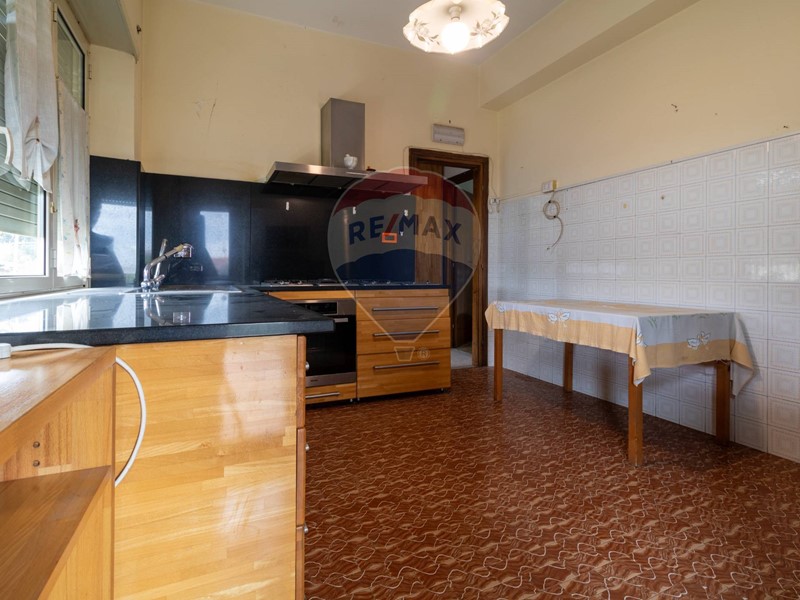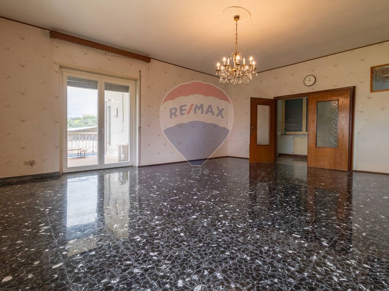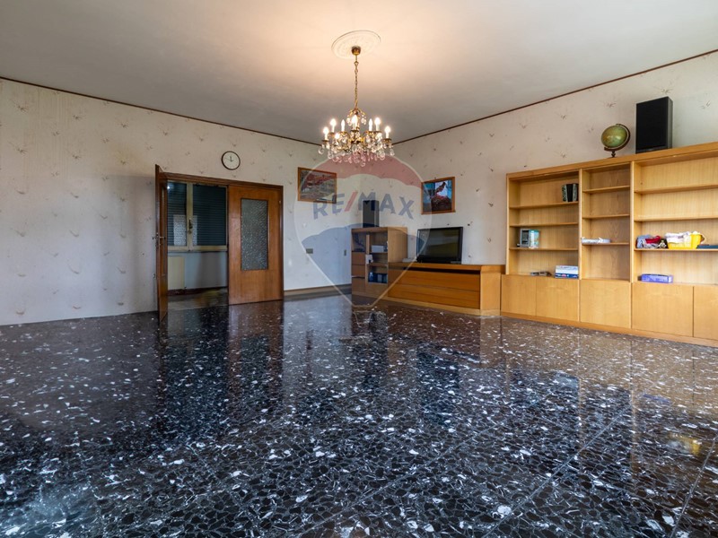 L'immobile è disposto al primo piano di una palazzina non dotata di ascensore, è composto di ampio salone, cucina abitabile con camino, primo bagno finestrato con doccia, secondo bagno finestrato con vasca, due ampie camere da letto matrimoniali, due camerette, un balcone ed un terrazzo di 14 mq accessibile da cucina e salone.