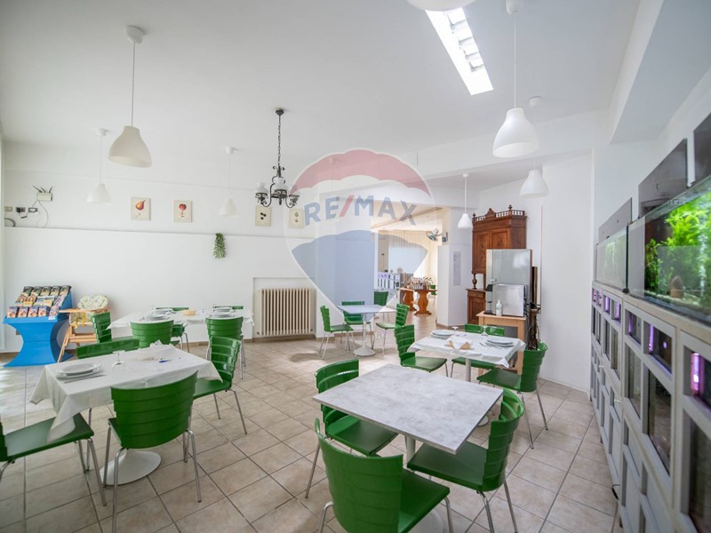 La struttura ha una superficie totale di circa 850 mq così suddivisi: al piano terra troviamo gli ambienti dedicati all'accoglienza come reception, ampio salone e bar, oltre ai locali dedicati alla ristorazione con cucina, sala ristorante, locale lavaggio piatti, lavanderia e relativi servizi.