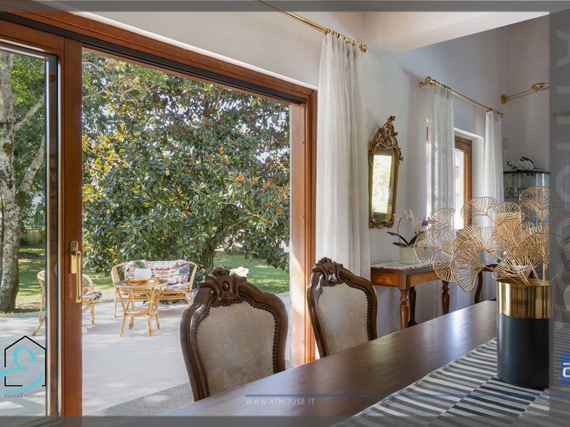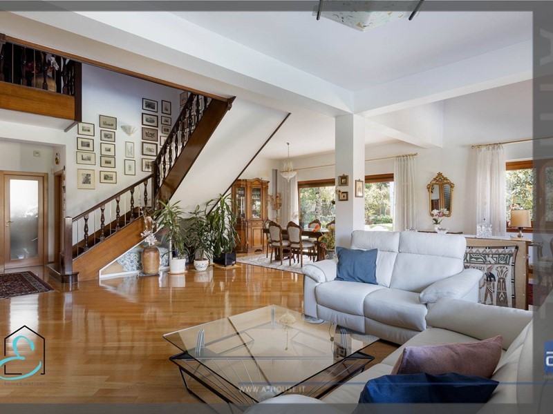 La villa si sviluppa internamente su due livelli ed è composta da ampio ingresso separato dalla zona giorno con una bellissima porta a vetri, da cui è possibile accedere a una prima stanza, ad oggi utilizzata come secondo salotto e studio. Questa prima caratteristica può essere interessante per chi necessita di una zona lavoro separata dagli ambienti familiari, adatta anche per accogliere clienti e/o ospiti. Superato l'ingresso, la vista si apre su uno splendido e ampio salone di oltre 70 metri quadrati, dove la luce regna sovrana, grazie alla presenza di ampie vetrate e finestre rivolte sul giardino. Seguono una spaziosa cucina abitabile, anch'essa dotata di porta finestra rivolta sul giardino, un bagno completo finestrato, una comoda zona lavanderia e un ripostiglio.