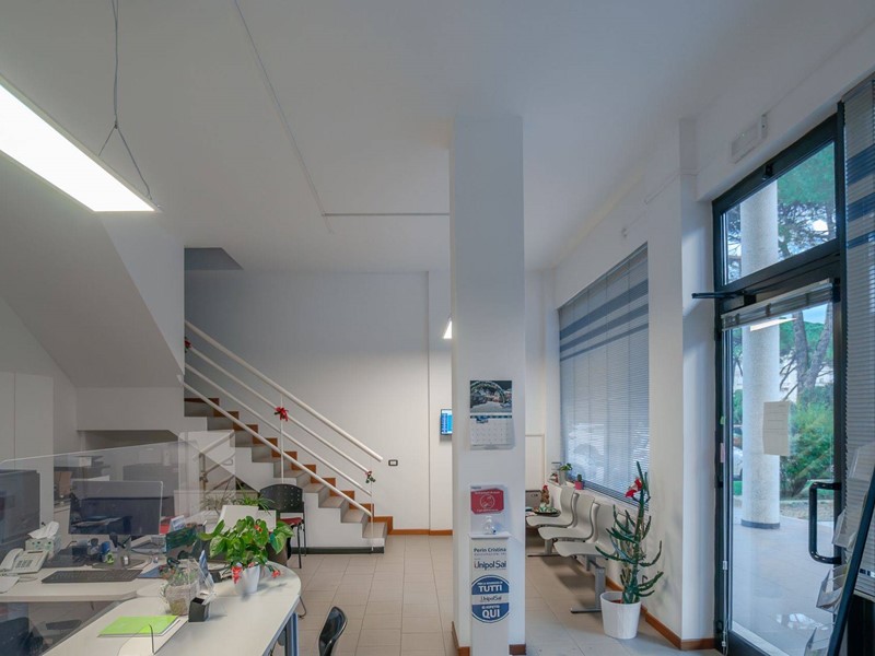 L'immobile si sviluppa su 109 metri quadrati catastali disposti su due piani. Il piano terra open space è dotato di due grandi vetrine, mentre al piano superiore sono disposte due ulteriori stanze ad uso ufficio e il bagno.