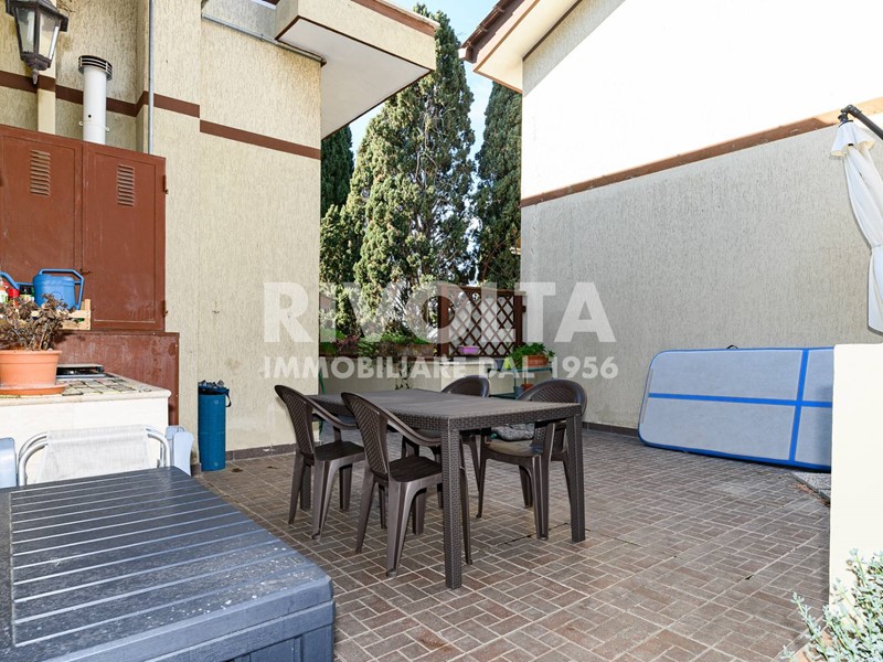 Adiacente al soggiorno troviamo una cucina abitabile anchessa con apertura sul terrazzo e a completare la zona di servizio troviamo un comodo ripostiglio con vano lavanderia, ed un bagno ospiti.