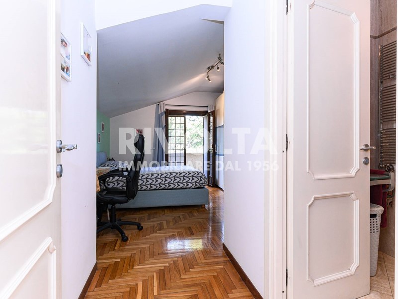 Dalla zona giorno, unelegante scala in muratura conduce al Superattico che si compone di tre camere con affacci immersi nel verde, secondo ripostiglio, un ampio balcone e due bagni.
