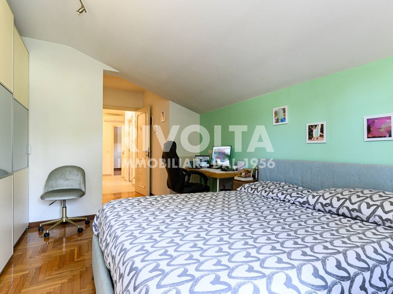 L'ubicazione, con la sua tranquillità e riservatezza ed allo stesso tempo vicinanza a scuole, servizi e negozi, il piano attico e superattico, lampia metratura e gli straordinari spazi esterni sul verde rendono questa proprietà unica.