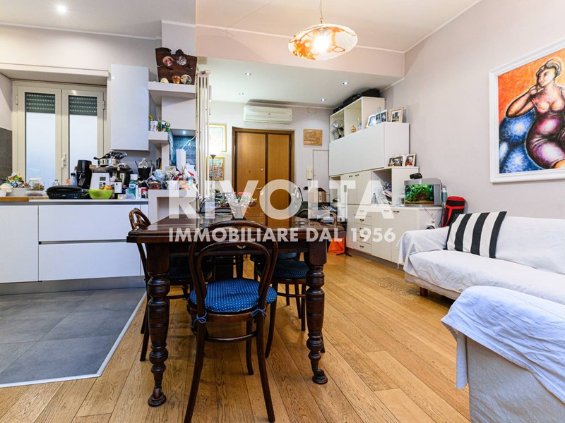 Limmobile possiede un'ottima distribuzione degli spazi interni e si compone di: un ampio salone, cucinotto, due spaziose camere matrimoniali, doppi servizi e spazio lavanderia. Il riscaldamento è centralizzato con contabilizzatori di calore, i pavimenti in parquet in ottimo stato.