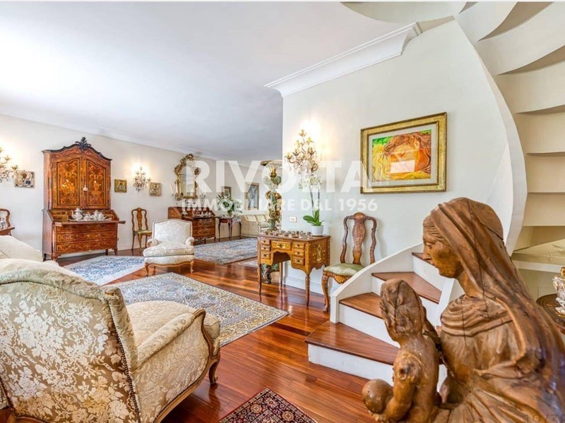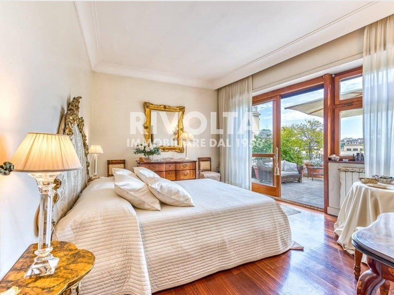 Rivolta Vende - Zona Parioli - Attico e superattico di alta rappresentanza all'interno di un elegante condominio con servizio di portineria. L'immobile si sviluppa per una superficie complessiva di circa 300 mq più 500 mq ca di terrazze ed è composto al primo livello da un ampio salone doppio, sala da pranzo, cucina abitabile di ampia metratura, tre camere matrimoniali e tre bagni; l'intero piano è circondato da una terrazza perimetrale con vista panoramica. Al secondo livello la proprietà è composta da un ampio vano e una seconda grande terrazza panoramica. La proprietà si completa di due posti auto all'interno del condominio.