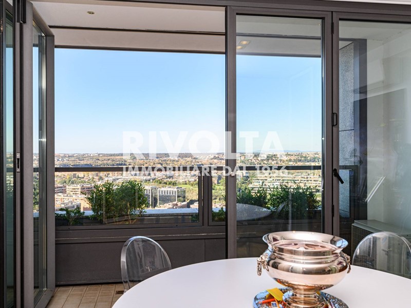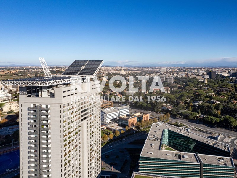 Rivolta vende in esclusiva - al 23esimo piano dell'EUROSKY TOWER, l'edificio civile più alto e "Trendy" di Roma, oltre che una delle torri più alte d'Italia, disegnata dall'architetto Franco Purini in perfetta armonia con l'architettura razionalista dell'Eur. La Casa, COMPLETAMENTE RISTRUTTURATA LUSSO, misura 70 mq ca. e gode di un PANORAMA MOZZAFIATO SU ROMA e nel verde. Internamente si compone di: ingresso, ampio soggiorno con cucina a vista, serra, camera da letto matrimoniale, bagno, balcone vivibile e POSTO AUTO IN GARAGE. Il complesso residenziale offre una serie di FACILITIES che lo rendono unico nel sue genere come la PALESTRA e la SPA (sauna, bagno turco, doccia emozionale, area relax) che si trovano sullo stesso piano della casa ma dal lato opposto del grattacielo, il BAR aperto 24 ore su 24, 7 giorni su 7, al piano superiore (24esimo) e l'AREA LOUNGE, dove rilassarsi e ordinare il DELIVERY al piano. I residenti non devono nemmeno preoccuparsi di andare a gettare la spazzatura: la RACCOLTA DEI RIFIUTI É AL PIANO. LA RECEPTION è aperta 24 ore al giorno, 7 giorni su 7, e chi volesse può prenotare la SALA CINEMA con tutti i più elevati standard di comfort. Inoltre è presente il servizio di LAVANDERIA, il ROOF GARDEN con PARCO GIOCHi ed area dedicata ai bambini. Il Roof Garden, con la sua vista spettacolare su Roma, è soprattutto destinato a CENE e FESTE PRIVATE per i residenti di questo fantastico BUILDING. Nelle vicinanze tutti i servizi, il polmone verde del PARCO DELLA CAFFARELLA e il Laghetto dell'Eur. Il profilo del residente-tipo, è quello del professionista affermato, dell'imprenditore di successo, dello sportivo o del personaggio del mondo dello spettacolo. Ma non bisogna per forza essere un vip per stanziarsi qui sulle nuvole dellEur. Questa casa è consigliata per chi ama vivere protetto, con tutti i comfort, servizi e sicurezza o uso investimento da mettere a reddito.