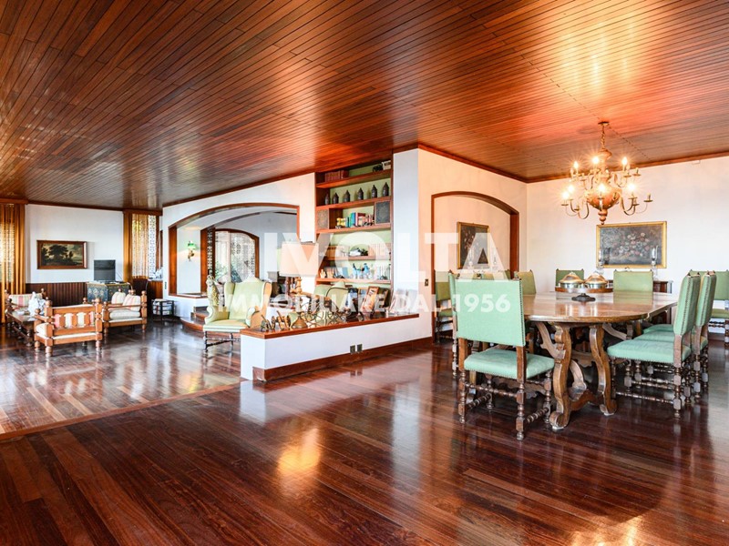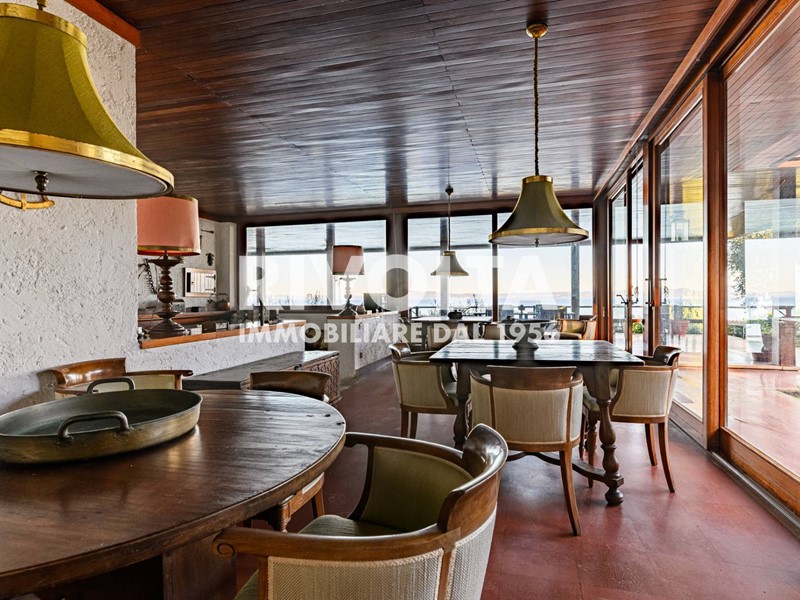 Dispone inoltre di un ampio soggiorno, con GRANDI VETRATE che offrono una vista mozzafiato sul mare e sul giardino, e di una grande cucina professionale con ampia zona di servizio, comprensiva di 2 camere di servizio doppie e 1 bagno. Completa la proprietà un patio con un salottino da caccia arredato con tavoli da gioco, divano e camino direttamente affacciato sullelegante e AMPIA TERRAZZA dove godere di momenti indimenticabili difronte ad uno straordinario panorama.