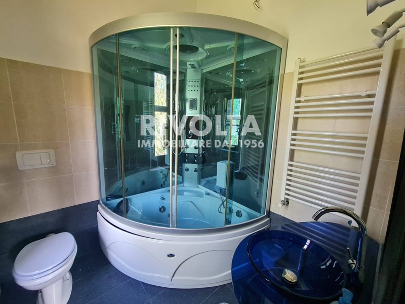 Al primo piano troviamo la suite padronale con camino, una seconda suite con balcone e bagno con vasca idromassaggio e ulteriori tre camere da letto tutte con bagno interno.