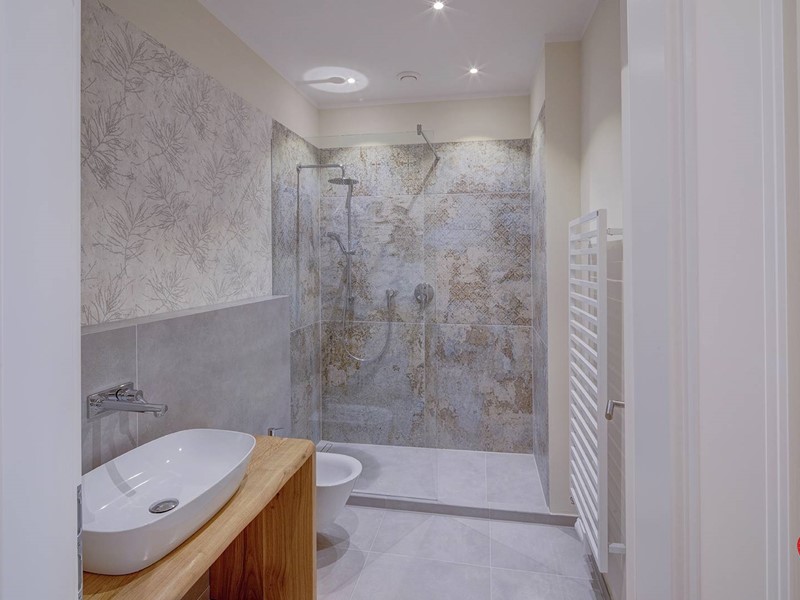 La composizione interna risponde alle esigenze attuali offrendo un ingresso, un grande living con cucina a vista, due camere da letto di cui una con doccia e lavabo interne, bagno completo, wc separato e grande ripostiglio.
