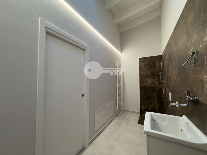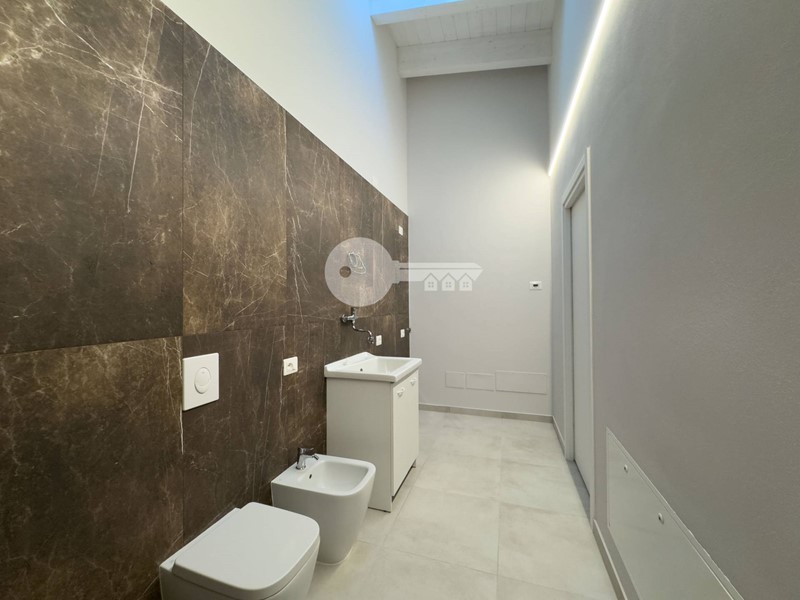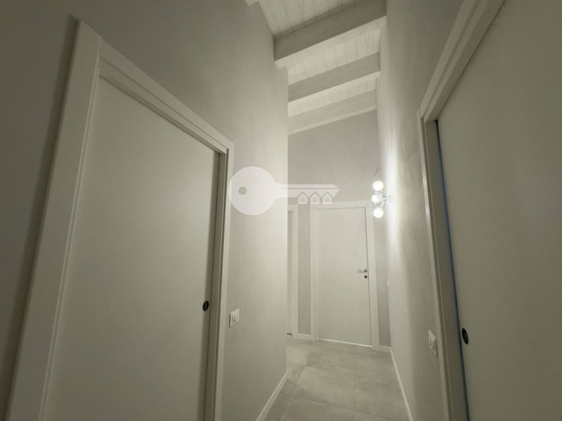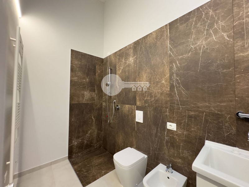 La soluzione sarà composta da ingresso sul soggiorno con la cucina openspace; la zona notte presenta un disimpegno che conduce alle 3 camere da letto e ai due servizi di cui uno comprende anche la lavanderia.