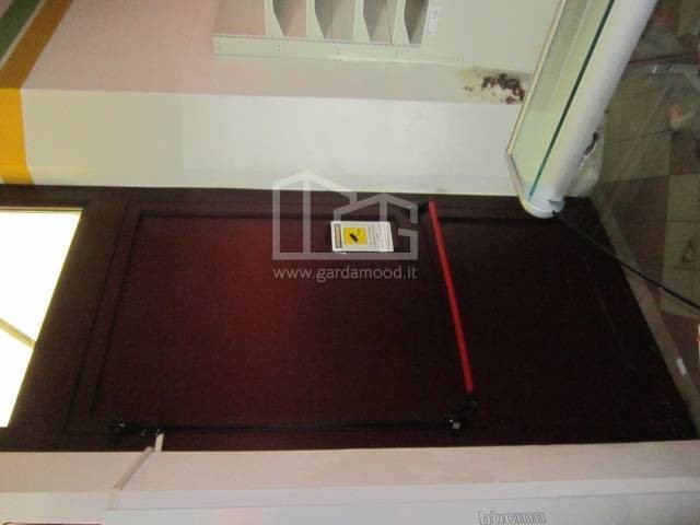 Il locale, di superficie di 391 mq e altezza 3,50 mt, è posto al piano terra; è collegato tramite scala interna e montacarichi al magazzino di 30 mq e altezza 3,00 mt, sito al piano interrato, il quale è completato da servizi igienici, spogliatoi e ripostiglio.