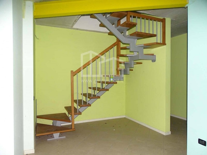 Il negozio, posto al piano terra, in angolo nord-est al complesso, ha una superficie di 75 mq ed è composto da un unico locale, con sotto negozio con consistenza commerciale di circa 21mq al piano interrato, collegato al piano terra attraverso una scala esterna, nel quale è collocato il blocco servizi.
