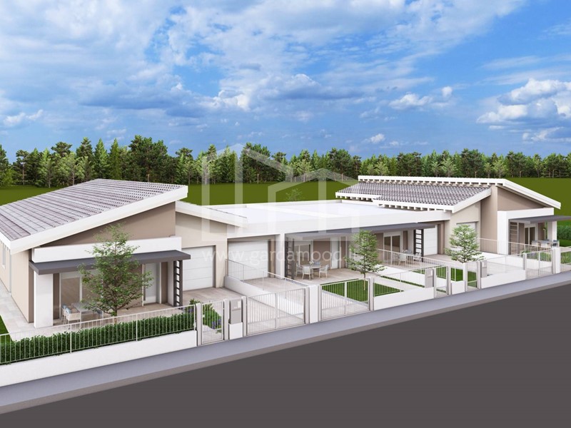 Tra gli elementi che completano l'abitazione ci sono: box auto da 26 mq con basculante sezionale elettrica ed attacchi lavanderia; secondo posto auto in corte; porticato d'ingresso; giardino di circa 105 mq.