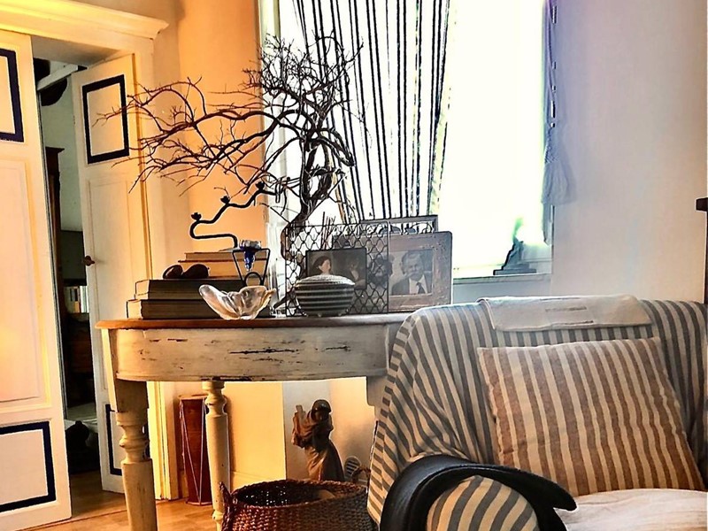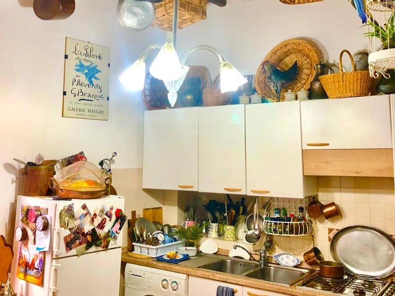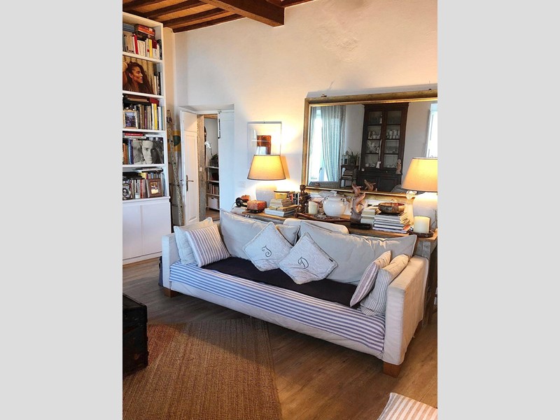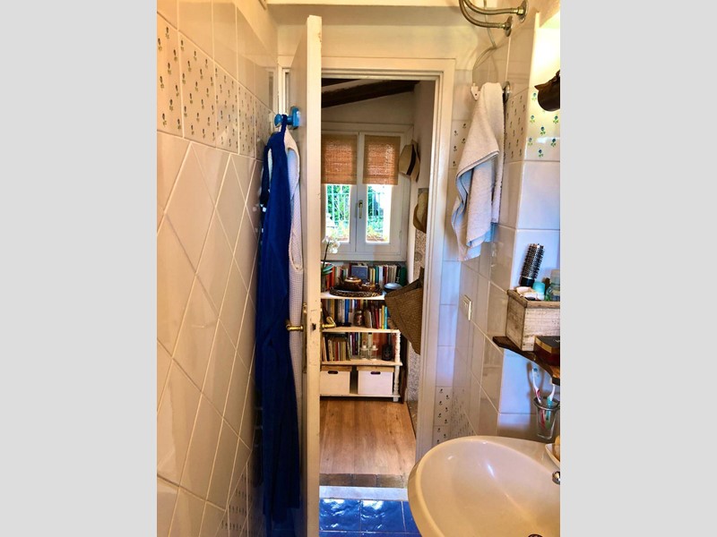Vendesi meraviglioso appartamento nel borgo antico di Poggio, isola d Elba (LI). L immobile di trova in una delle vie più suggestive del paese chiamato il Vicolo Degli Artisti, primo piano di un elegante e signorile palazzina , ristrutturata e perfettamente tenuta. L appartamento, 140 mq e distribuito in parte su un grande e luminosissimo primo piano e al piano superiore si trova una mansarda con travi di castagno antiche ottimamente tenute. Si accede all appartamento dal vicolo, attraverso un elegante portone antico principale e una comoda scala in granito del 1400 con suggestivo cancellino in ferro battuto artigianalmente lavorato che conduce da una parte ad un ampia cucina impreziosita da mobili in arte povera e raccolte di strumenti e oggetti di cucina antichi . Il pavimento come in tutto L appartamento, sarebbe di base in cotto con mattoni artigianali ma è stato ricoperto da un elegante pavimento in laminato color legno antico anti umidità e acqua . Segue un comodo sgabuzzino collegato da due scalini in marmo bianco, gli stessi che caratterizzano un antico lavandino che si trova nello stesso, con due finestre. Da qui la scala in pietra per accedere alla mansarda, di circa 60 mq a degradare, da cui è possibile realizzare un ulteriore appartamento. Si ridiscende e dalla cucina con un piccolo corridoio si passa da un lato al bagno con antibagno, doccia con finestra panoramica sul golfo di Marciana Marina. Il bagno ha scaldabagno capiente. Dal L altro lato del piccolo corridoio si apre il meraviglioso salone, con vista a 360 gradi da Capo d Enfola, golfo di Marciana Marina, monte Perone e relative vallate di boschi. Il salone ospita una libreria a muro d epoca ed e valorizzato da mobilio, tessuti e oggetti ricercati che esaltano ancora di più lo stile dell immmobile. Da un lato troviamo un moderno e ricercato camino a pellet perfettamente funzionante con bocchette calorifere collegate a tutte le stanze. Il salone ha un lungo terrazzo con vista super panoramica e con posto per tre persone, anche questo impreziosito da oggetti di antiquariato. Dal salone si accede attraverso porte d epoca doppie nelle due camere matrimoniali, una con vista sul vicolo, l altra con vista mare e chiesa di Poggio. Il soffitto e abbellito da travi antiche in castagno e gli infissi sono in parte nuovi ma nel rispetto dello stile della casa o recuperati e restaurati completamente. I vetri di ogni finestra sono doppi. Ogni infisso è abbellito con ornamenti in granito e marmo, pietra tipica dell isola d Elba ma anche materiale presente nelle case più eleganti. Alla proprietà, tramite servitù esterna e collegata alla palazzina con una scalinata, si accede a circa 30 mq di giardino con alberi di limoni e vasellame antico, adatto il tutto per un piacevole giardino in estate essendo ben ventilato ma anche in inverno, data la posizione unica, soleggiata e la privacy di cui gode l intera proprietà. L appartamento è messo contemporaneamente in vendita in parte con oggetti e mobili di antiquariato trovati dai proprietari con cura e passione in puro stile elbano. La casa e vicina a servizi e ai due parcheggi pubblici di Poggio. Ottima come posizione per raggiungere le meravigliose spiagge del versante Nord dell isola quali La Biodola, Procchio, Patresi e Sant Andrea ma anche il Porto turistico di Marciana Marina. Inoltre da Poggio passano numerosi sentieri bike e trekking tra i quali il percorso GTE e la cabinovia per il Monte Capanne.