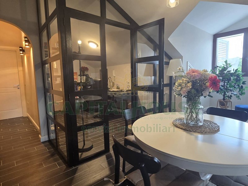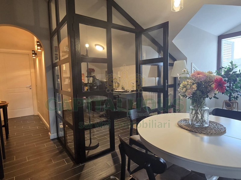L'agenzia Capital House di San Nicola la Strada propone in vendita una graziosa mansarda di 125 mq interni in zona Michitto. L'immobile, ubicato in un condominio con ascensore, è stato completamente ristrutturato nel 2018, assicurando così un alto standard di comfort e funzionalità. La mansarda è composta da un'ampia cucina/salone living con predisposizione termostufa a pellet, studio, doppi servizi, ripostiglio, due camere da letto di cui una dotata di cabina armadio e bagno. Gli ambienti sono ben distribuiti e godono di una tripla esposizione Sud-Est-Nord che garantisce una piacevole luminosità.