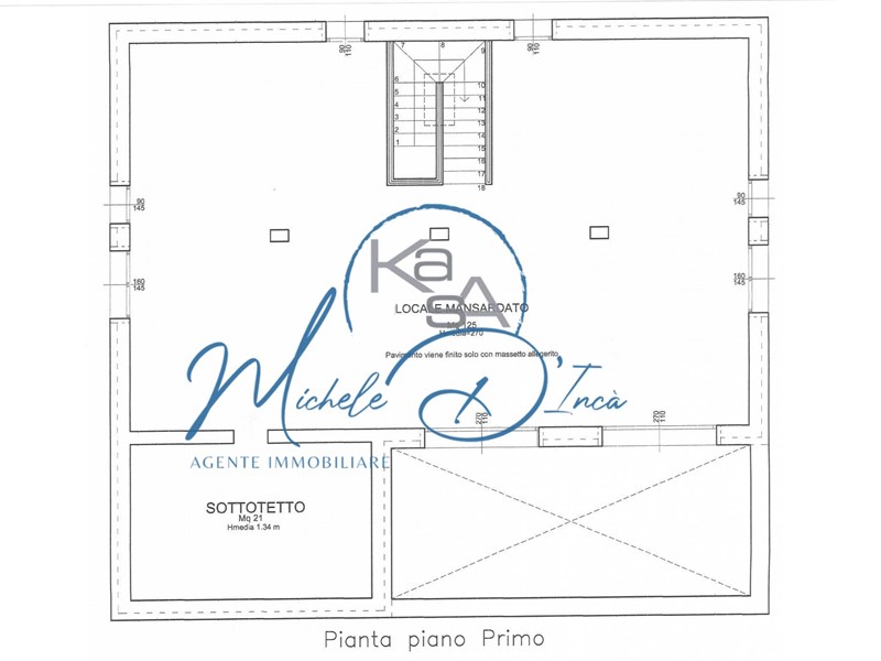 Piano superiore di circa 125 mq calpestabili con altezza media di mt 2,70 attualmente pavimento con massetto alleggerito che si presta a molteplici usi.