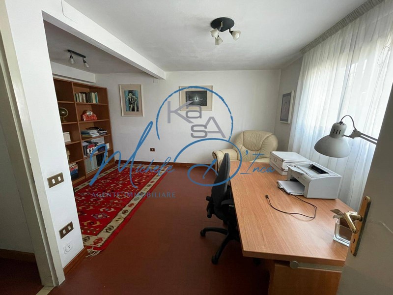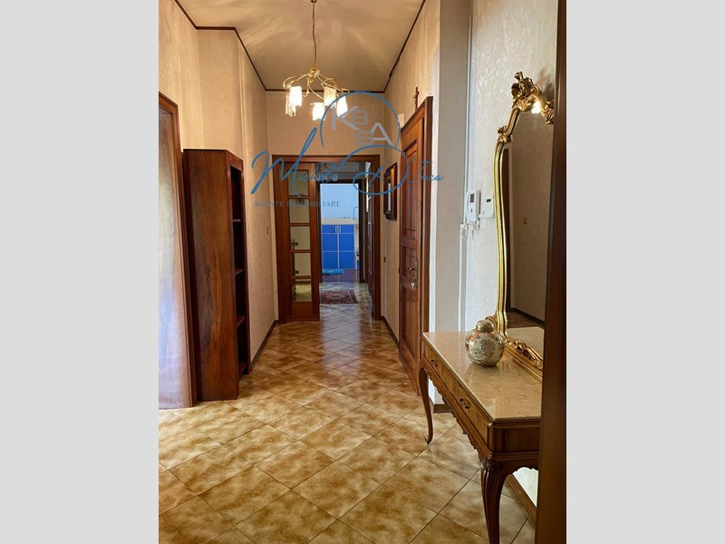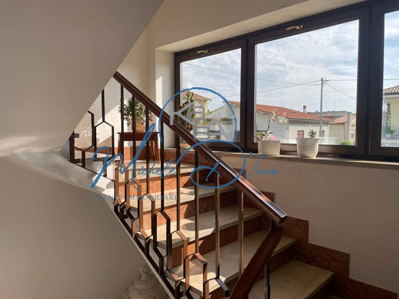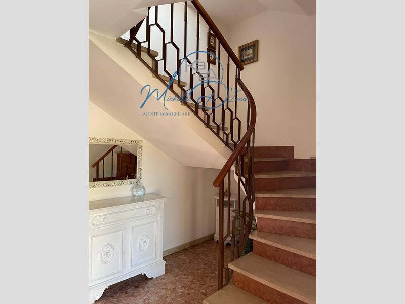 Il vano scala ci porta ai piani superiori: il primo piano utilizzato come abitazione è composto da un'ampia zona giorno suddivisa in cucina, pranzo e soggiorno da cui si accede ad una terrazza abitabile, 3 camere e bagno; il piano secondo, internamente ancora allo stato grezzo, presenta una superficie utile di oltre mq. 120, che potrebbe essere completato per ricavare il secondo ampio appartamento.