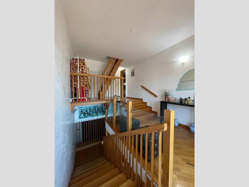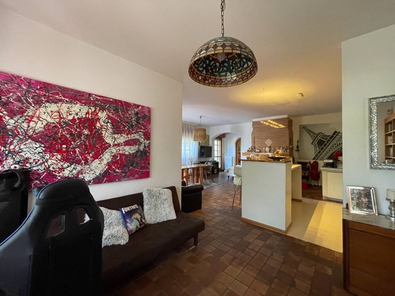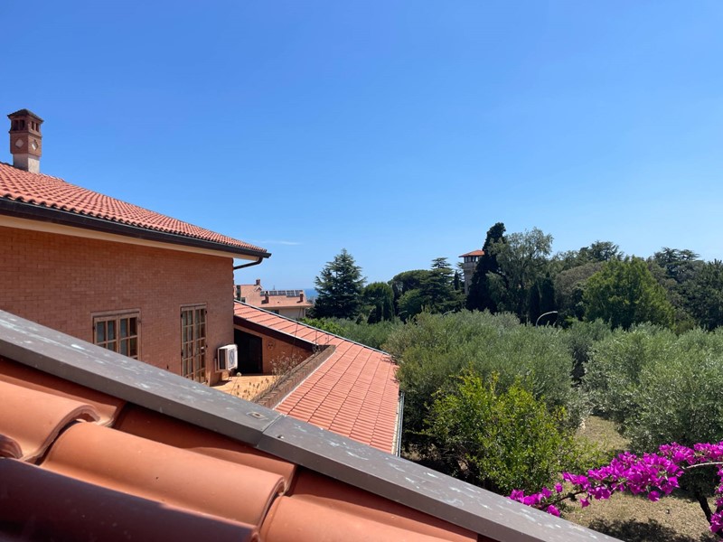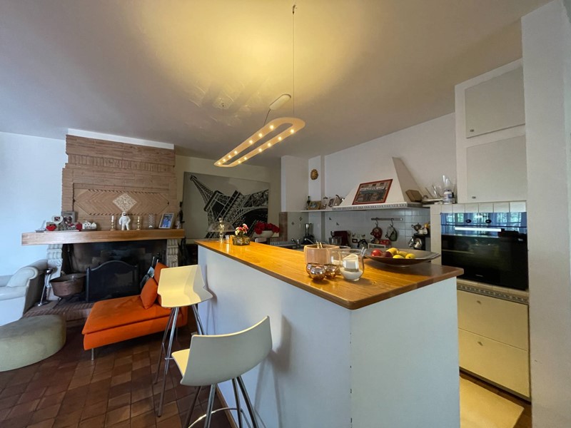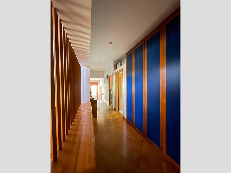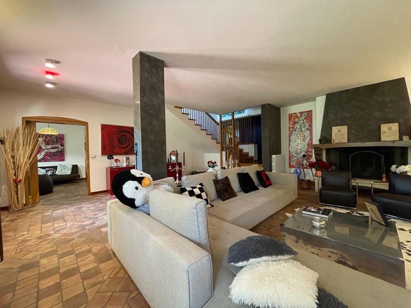 Al piano terra troviamo un ingresso, soggiorno di circa 100 mq, tinello con angolo bar/cucina, cucina abitabile, bagno oltre a due camere di cui una con bagno privato. Tramite una scala a vista in struttura in legno si accede alla zona notte posta al piano primo. Smontando dalla scala al piano primo si arriva in un ampio disimpegno finestrato con accesso sul terrazzo, dal disimpegno si accede alle tre camere e ai servizi. Un piccolo locale sottotetto ripostiglio accessibile tramite una scala di tipo nautico completa la proprietà.