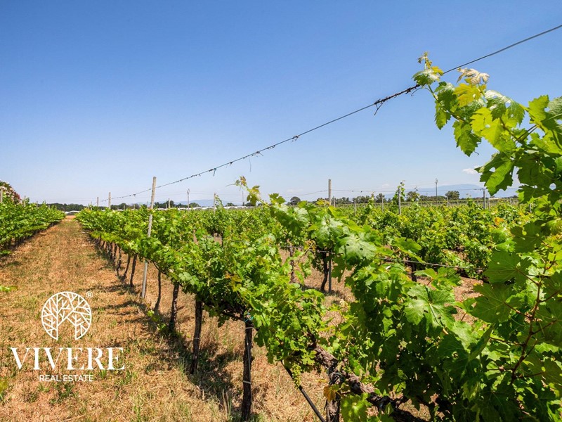 La proprietà ospita una villa di 300 mq ca. disposta su tre livelli, circondata da un giardino di 2.500 mq ca., un capannone di 120 mq ca. che funge da cantina di vinificazione e un vigneto di oltre 7 Ha a bacca rossa e bianca formato da vitigni autoctoni e internazionali.