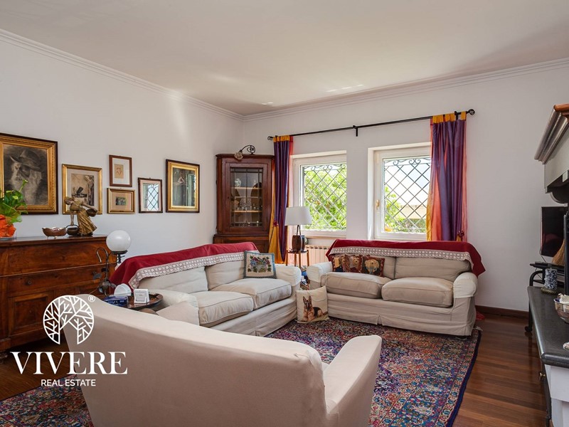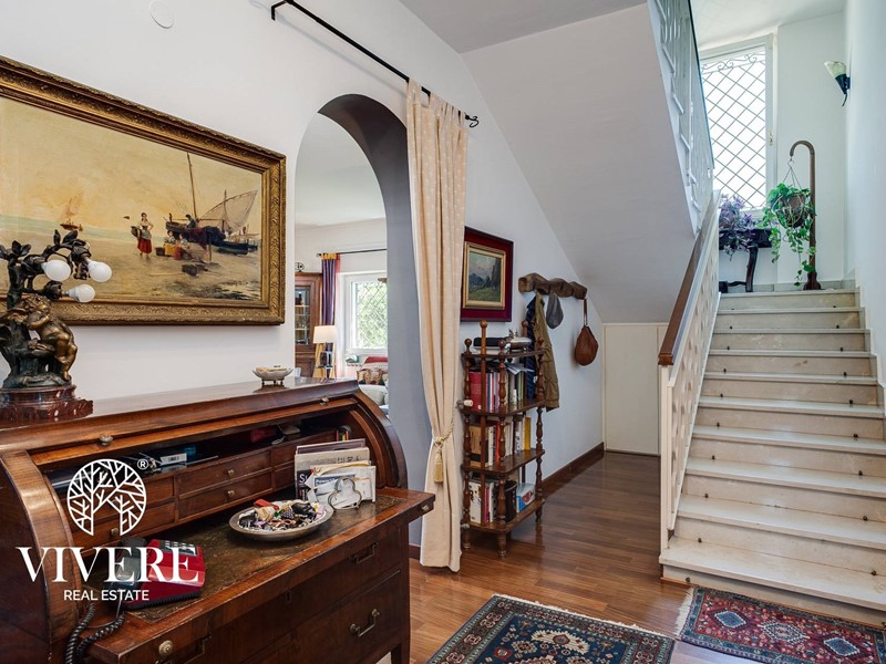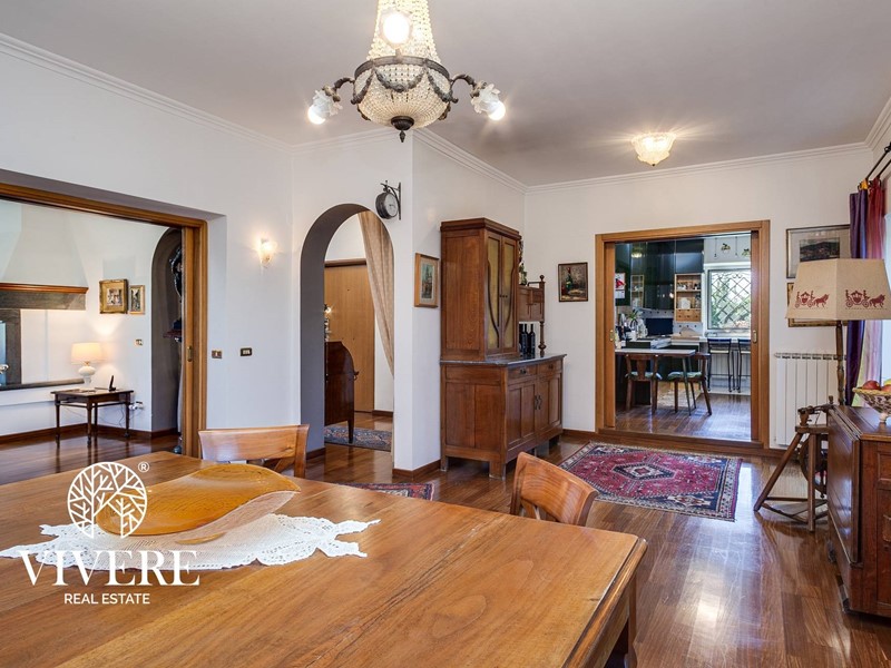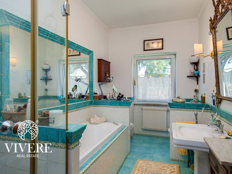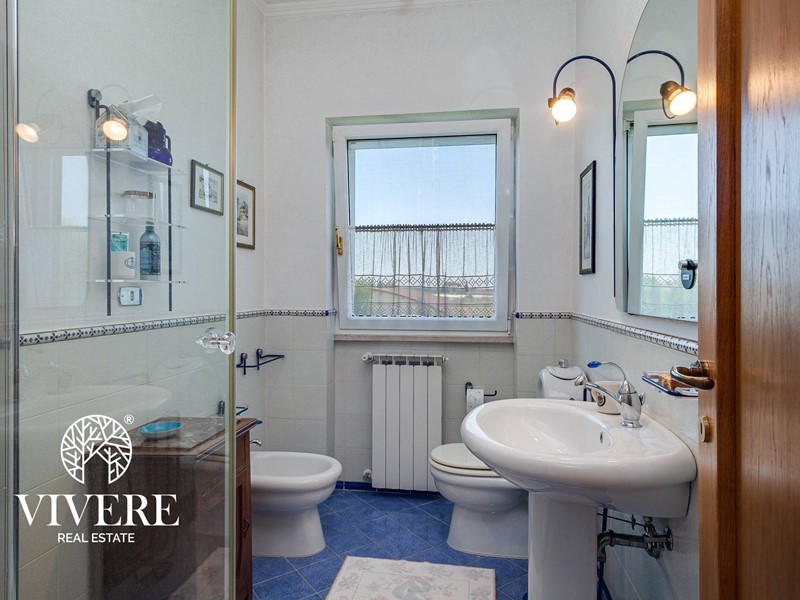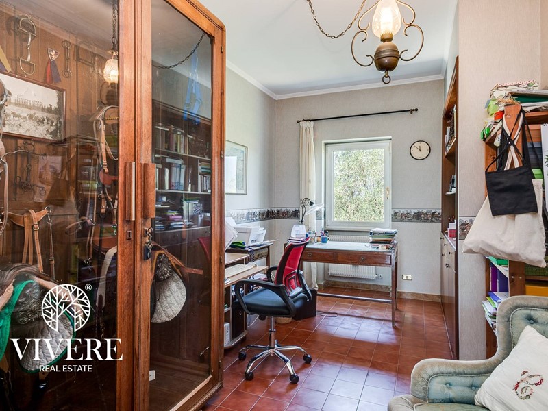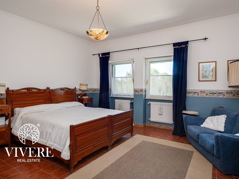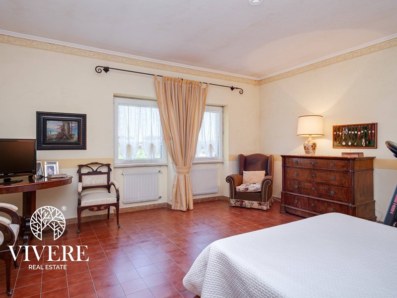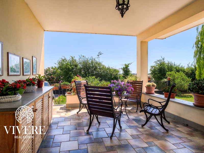 La villa posta su tre piani si compone di un piano terra, al quale si accede da un portico vivibile, con un ampio disimpegno, un salone doppio con camino, cucina abitabile, ripostiglio e un servizio; dal piano terra si accede tramite una comoda scala interna al primo piano composto da corridoio, tre camere da letto, cabina armadio, studio e due servizi; il secondo piano, collegato da una scala interna, è una mansarda con soffitti alti ed è composta da camera da letto, soggiorno, cucina, servizio e terrazzo con vista sul vigneto e la campagna circostante.