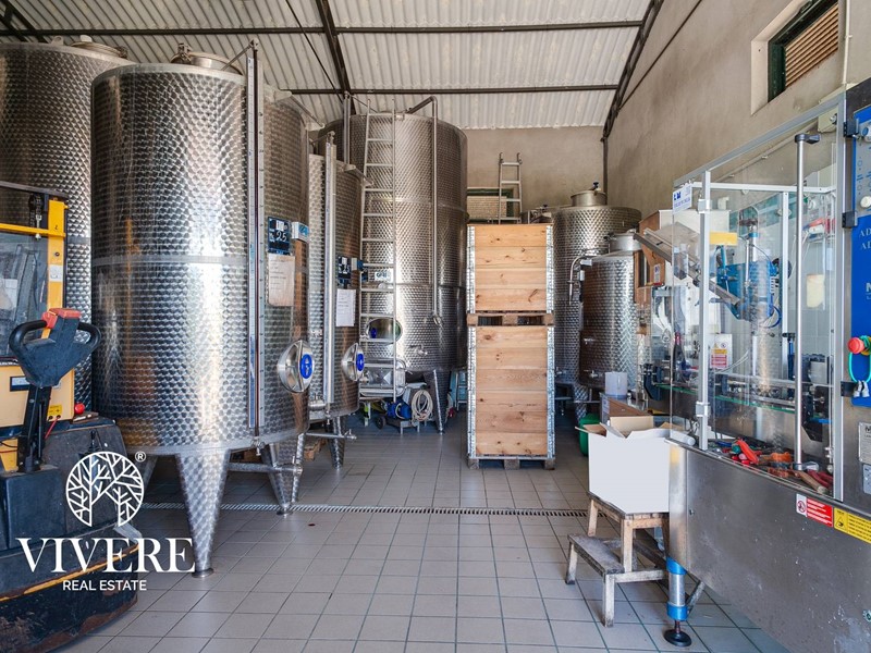 All'interno della proprietà è presente un capannone uso cantina di 120 mq ca. con un'altezza superiore ai 5 mt, con tutti gli impianti conformi alle normative vigenti, è dotato di tutti gli impianti e le attrezzature necessarie per la lavorazione delluva e la produzione del vino, la quale avviene direttamente in loco.