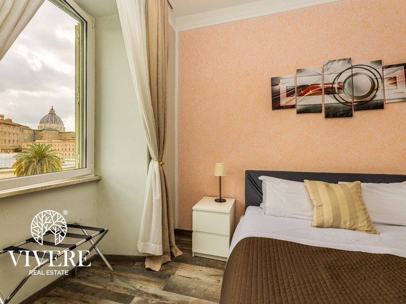 Prati, nel cuore pulsante del Vaticano, più precisamente nella bellissima cornice di Piazza Risorgimento, Vivere Real Estate cura la vendita di un affittacamere posto ad un piano alto luminoso con affaccio cupola di San Pietro. L'attività turistica, con ottimi fatturati, viene svolta all'interno di un appartamento composto da un ampia sala comune attrezzata con cucina, tre grandi camere matrimoniali con servizio en suite, per un totale di 7 posti letto in scia, e un comodo ripostiglio dove stoccare la biancheria o da utilizzare come deposito bagagli per il clienti in fase di check-out. Ottima la sua posizione data la vicinanza al Vaticano e all'ingresso dei musei vaticani, location turistica per eccellenza con affluenza giornaliera di 30mila visitatori, ma sopratutto per la vicinanza a via Cola Di Rienzo, via dello shopping per eccellenza, nonchè per la molteplicità di servizi commerciali che il quartiere offre ai turisti, come bar e ristoranti. Da non sottovalutare l'importanza della vicinanza della metro A Ottaviano e Lepanto, che permette ai turisti di spostarsi in poco tempo nei vari luoghi di principale attrazione turistica come piazza di Spagna, San Giovanni in Laterano o Colosseo.