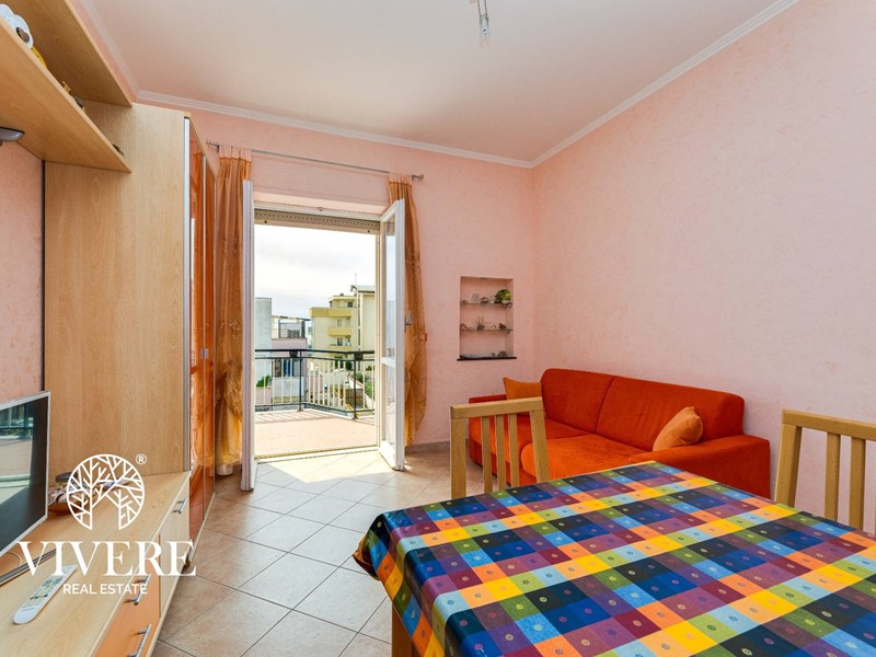 L'immobile si presenta in ottime condizioni interne e si vende totalmente arredato. Internamente è ben suddiviso ed è composto da un ingresso, cucina, soggiorno, camera matrimoniale, servizio e tre ampi balconi. La sua triplice esposizione gli permette di avere un elevata luminosità in ogni ambiente della casa oltre che buon riscontro d'aria.