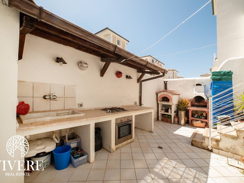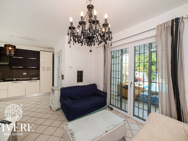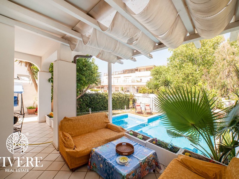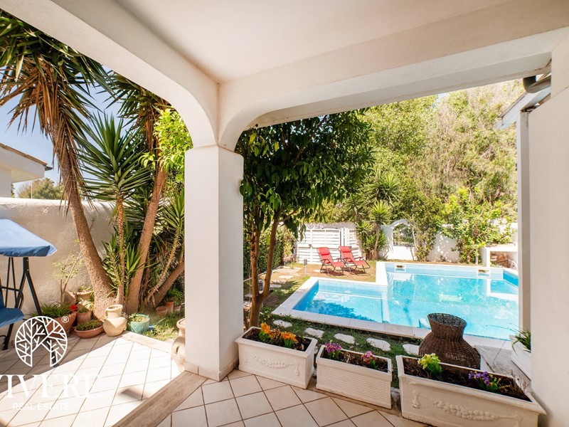 L'ingresso carrabile conduce a un ampio giardino solarium con piscina, zona barbecue, ampio tavolo e zona relax.