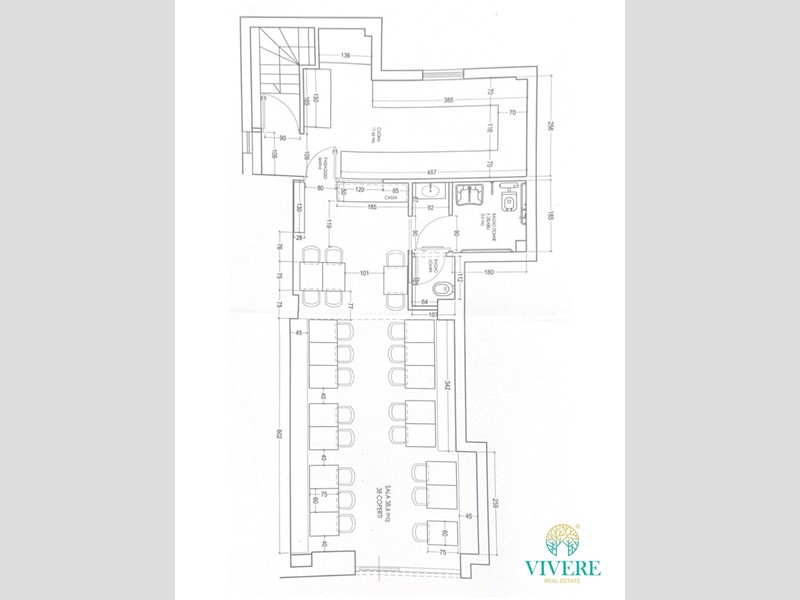 Il locale, di 140 mq su due livelli, si presenta in ottime condizioni manutentive ed è dotato di: