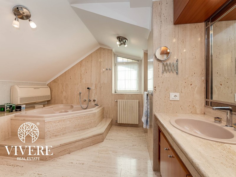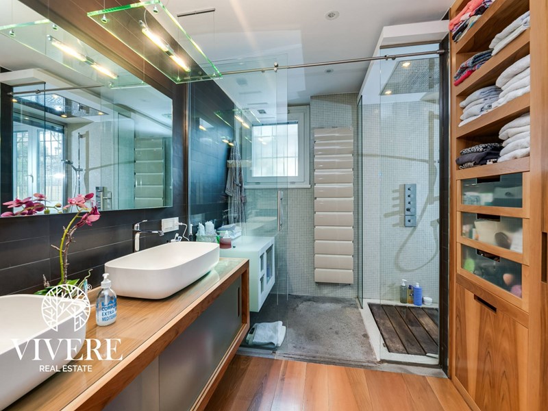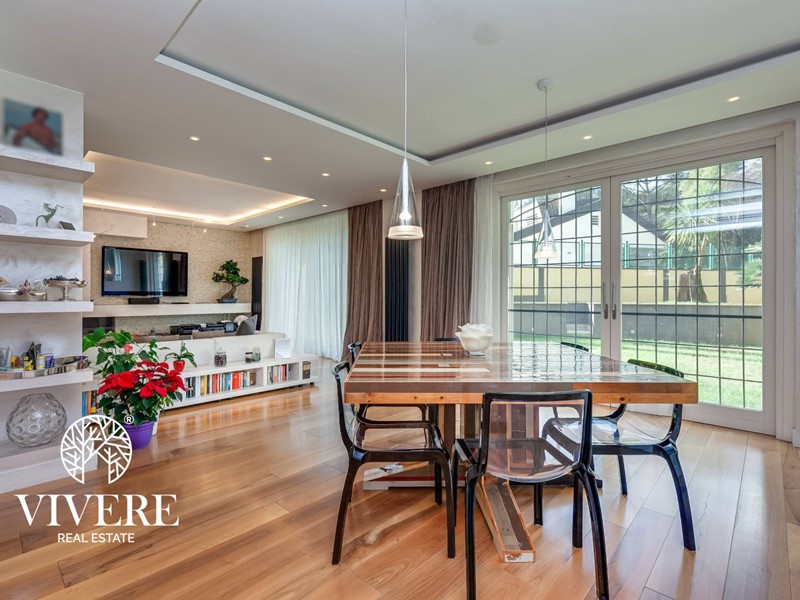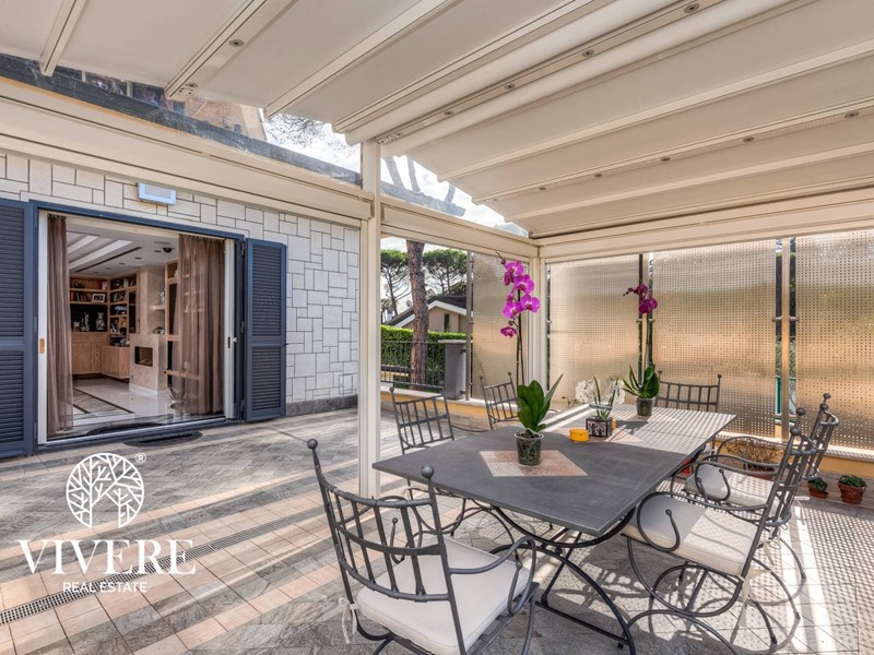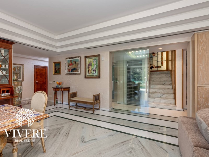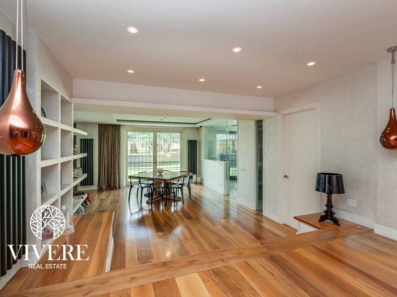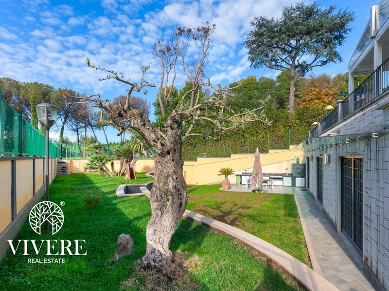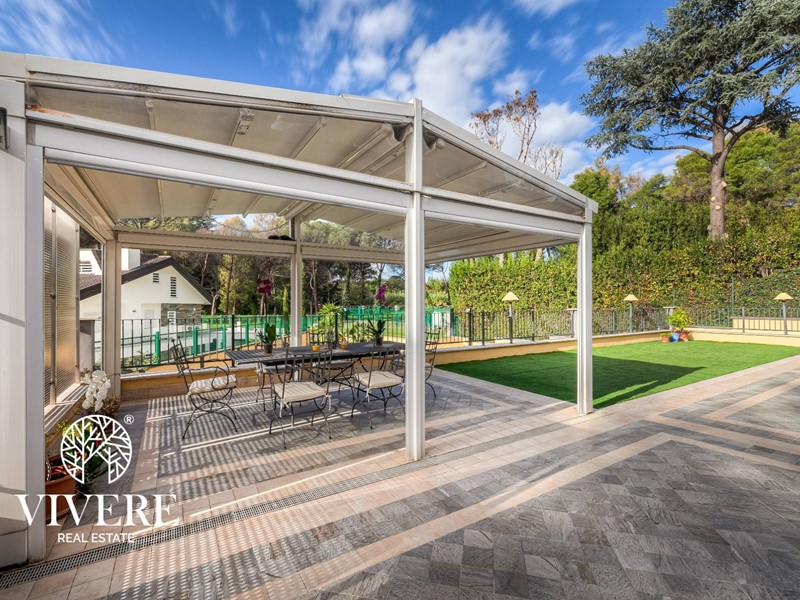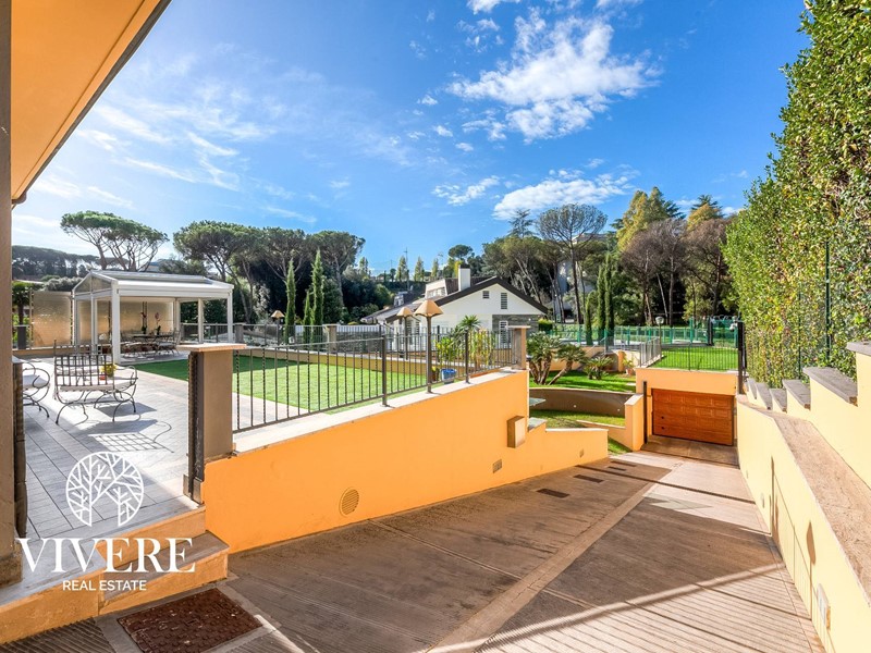 All'interno del contesto esclusivo di Villa Pamphili ed esattamente in via della Nocetta, VIVERE Real Estate cura la vendita di una splendida villa indipendente di circa 530 mq curata in ogni singolo particolare. La villa è attualmente suddivisa in due unita indipendenti ma collegate da un comodo ascensore interno che raggiunge tutti i piani.La villa è cosi composta: al piano terra troviamo un elegante e ampio salone di rappresentanza con camino a gas dal quale si accede ad un grande giardino pensile, una cucina abitabile, una camera attualmente adibita a lavanderia ed un servizio per gli ospiti. Il primo piano è composto da due camere da letto, di cui una con servizio en suite completo di vasca idromassaggio, un ulteriore servizio ed un terrazzo. Infine, al piano S1, ma solo catastalmente in quanto completamente fuori luce, troviamo due camere da letto con cabine armadio e bagno en suite, un ulteriore servizio, una seconda camera attualmente adibita a lavanderia, uno spazioso ripostiglio e un'ampia zona di 106 mq adibita a salone doppio e cucina. Completa la proprietà un'autorimessa di 109 mq circa, una cantina e tre locali tecnici attualmente due adibiti a dependance.La villa dispone inoltre di impianto fotovoltaico per acqua calda che serve il piano S1, l'impianto di climatizzazione canalizzato in tutti gli ambienti, sistema di allarme con video sorveglianza e un pozzo d'acqua.La proprietà si trova all'interno di un esclusivo comprensorio di sole ville con servizio di portineria, e i condomini sono inoltre proprietari, in quote, del campo da tennis e della piscina. Le spese condominiali comprendono tutti i servizi elencati.