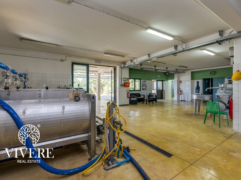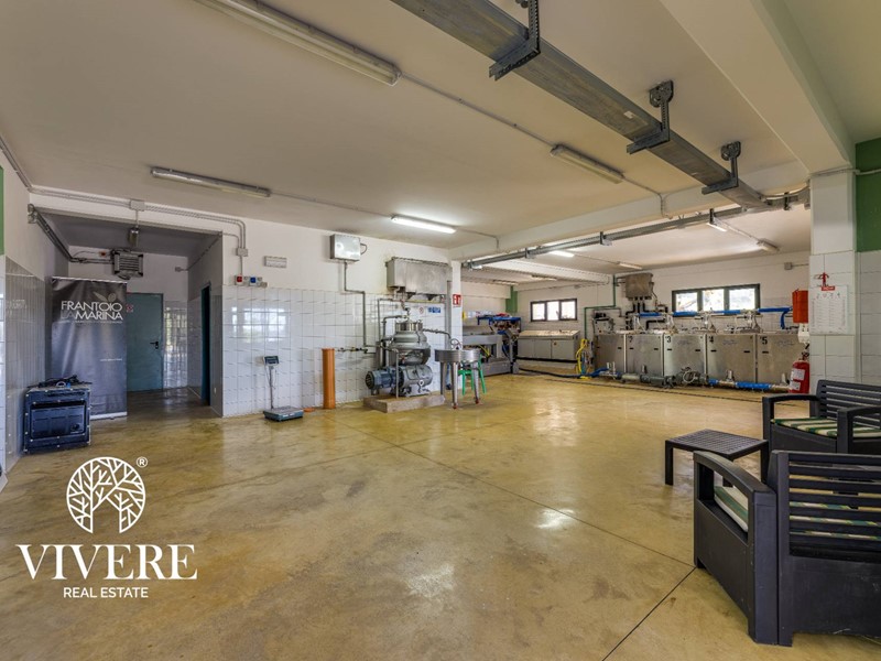Frantoio: Al piano terra si trova un frantoio dotato di macchinari di ultima generazione, che garantiscono la produzione di un olio di altissima qualità. Grazie alla sua reputazione consolidata, il frantoio è diventato un punto di riferimento per gli agricoltori della zona, offrendo un servizio indispensabile per la macinazione delle olive.
